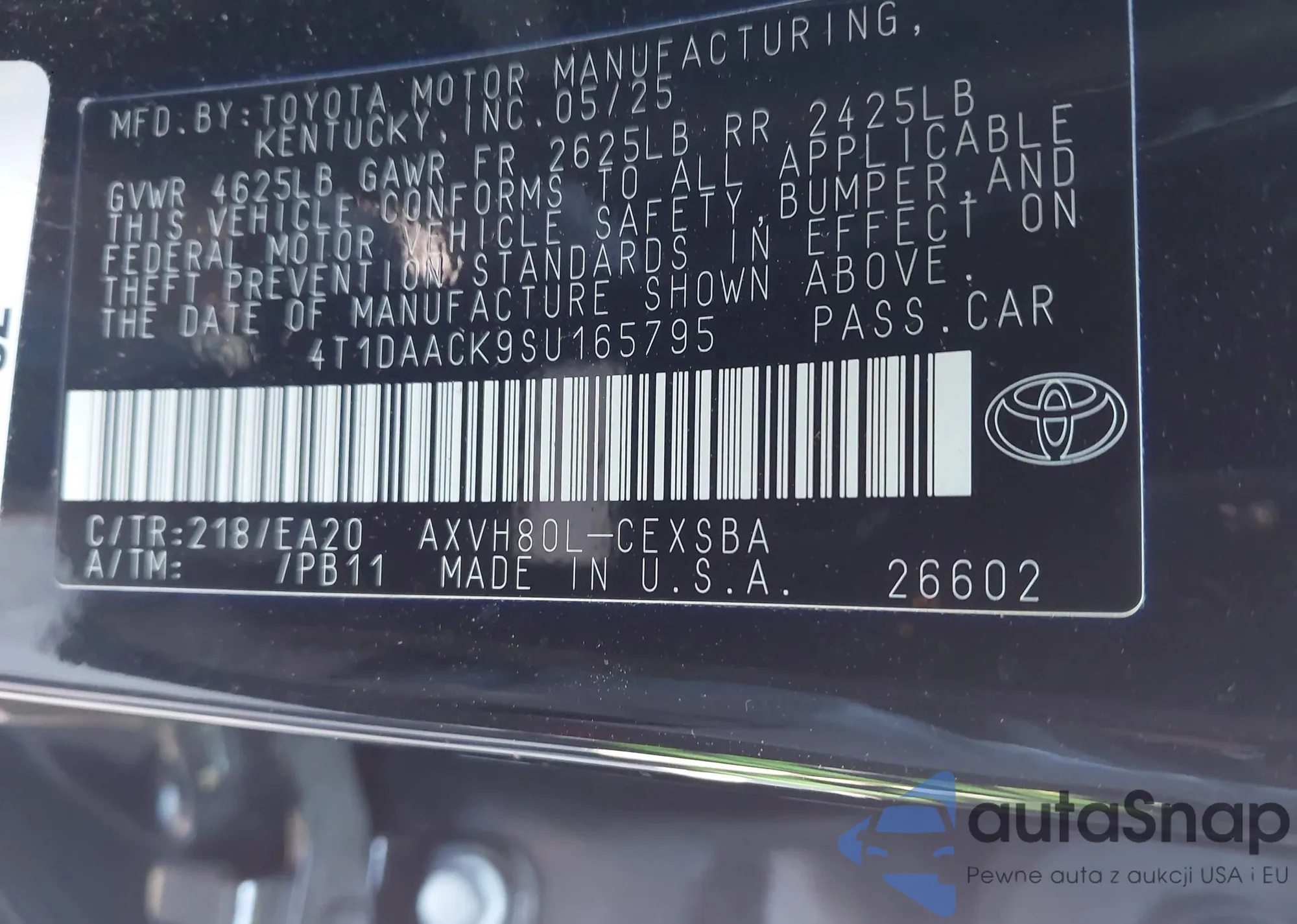 VIN: 4T1DAACK9SU165795