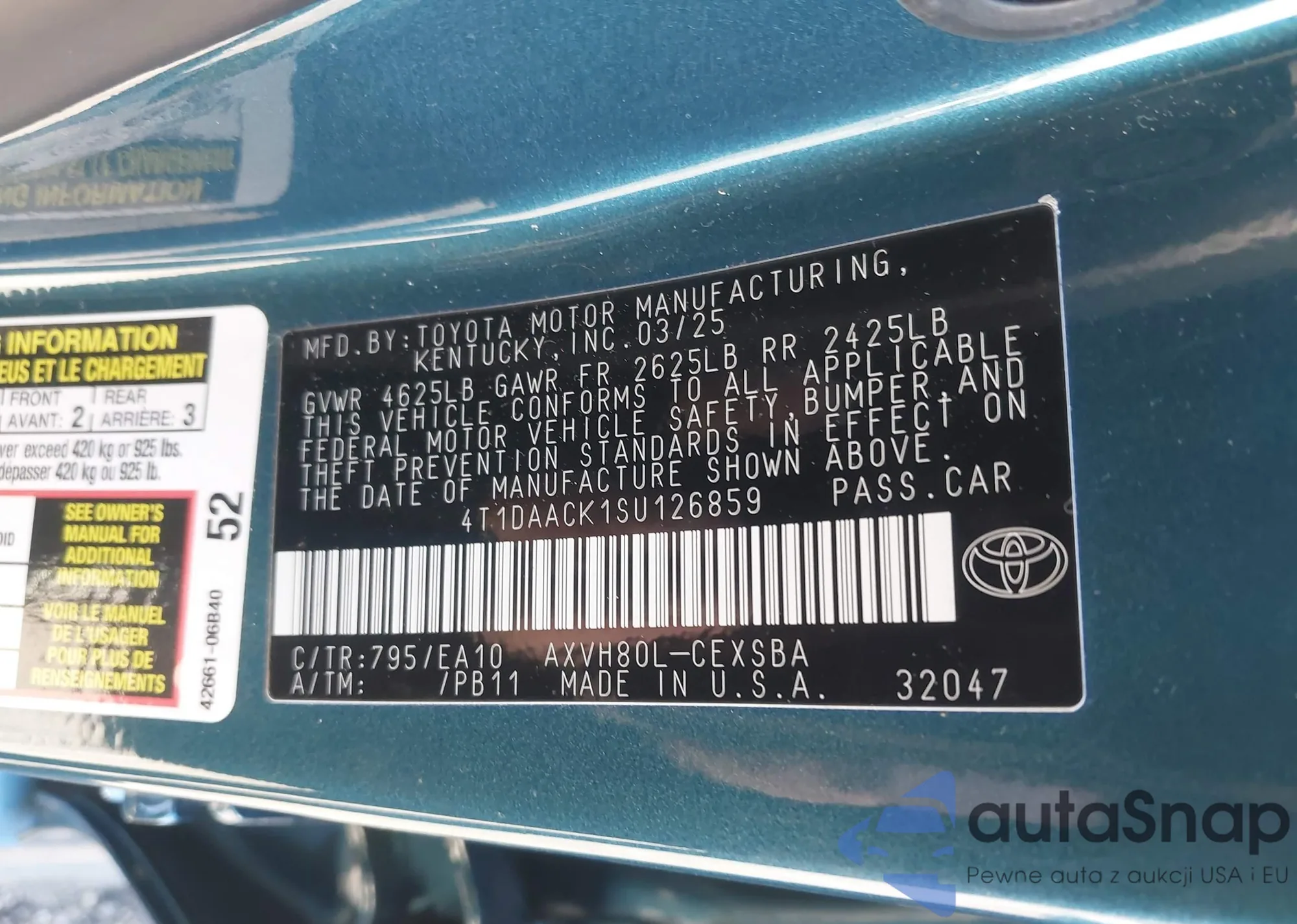 VIN: 4T1DAACK1SU126859