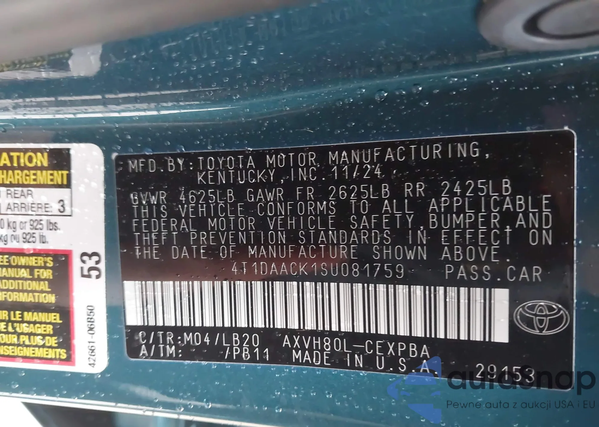 Samochód Toyota Camry 2025 (VIN 4T1DAACK1SU081759) nie był wcześniej licytowany. Dokumenty są czyste, przebieg odpowiada lub jest niższy niż średnia rynku. Sprzedaje go firma ubezpieczeniowa – polecamy zakup. Dostawa do portu zajmie ok. 6–8 tygodni.