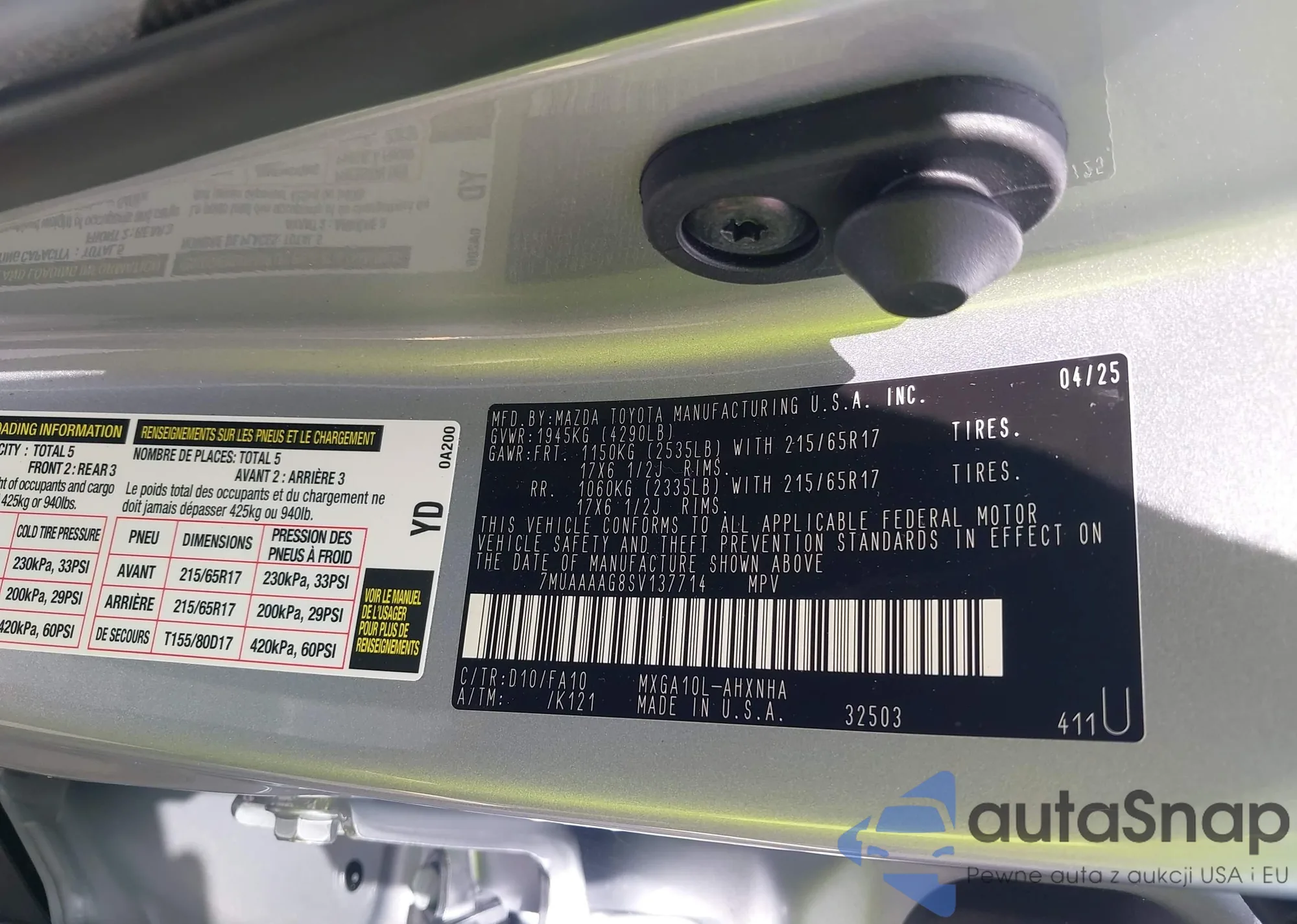 VIN: 7MUAAAAG8SV137714