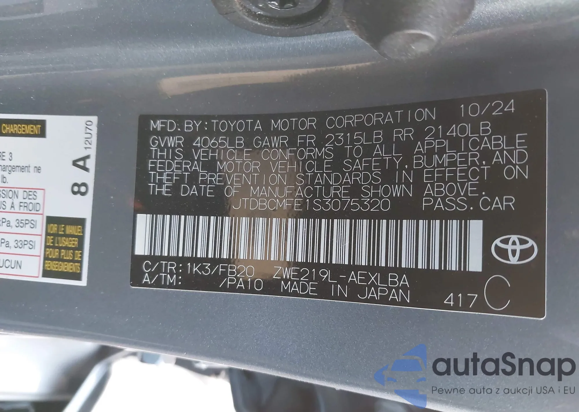 • VIN: JTDBCMFE1S3075320