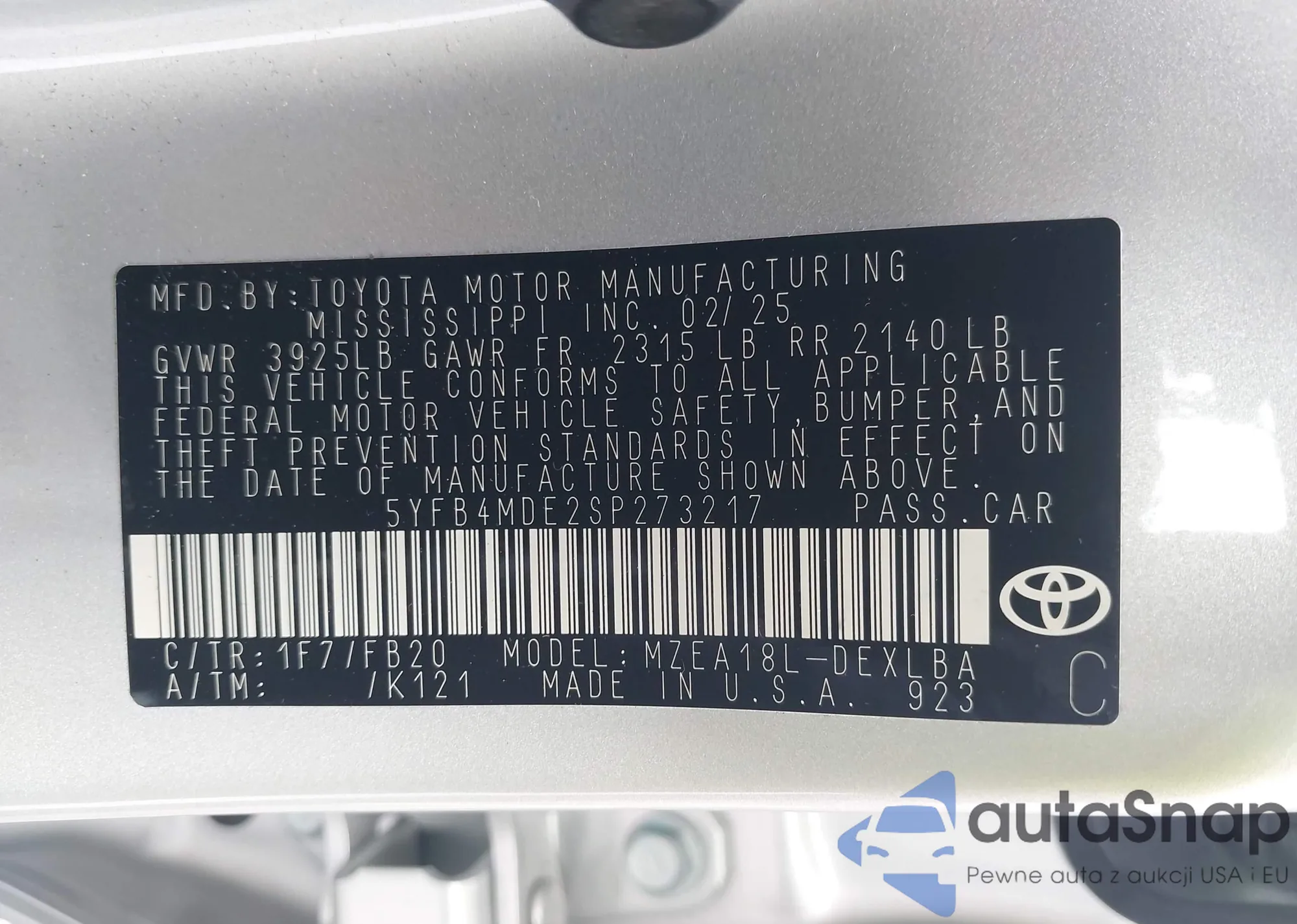 VIN: 5YFB4MDE2SP273217