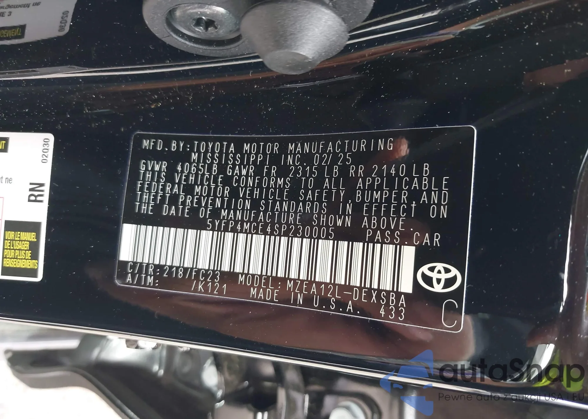 VIN: 5YFP4MCE4SP230005