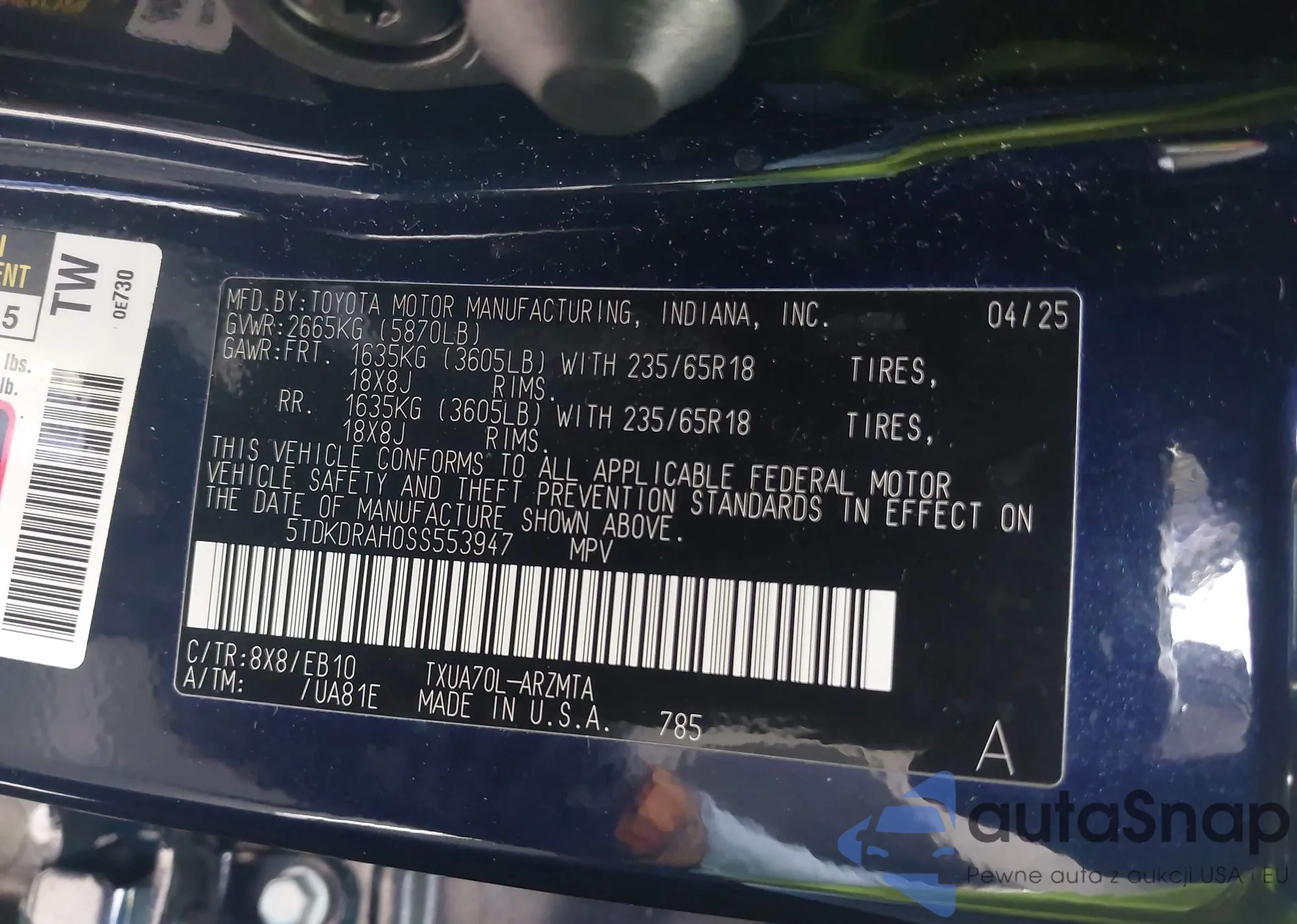 • VIN: 5TDKDRAH0SS553947