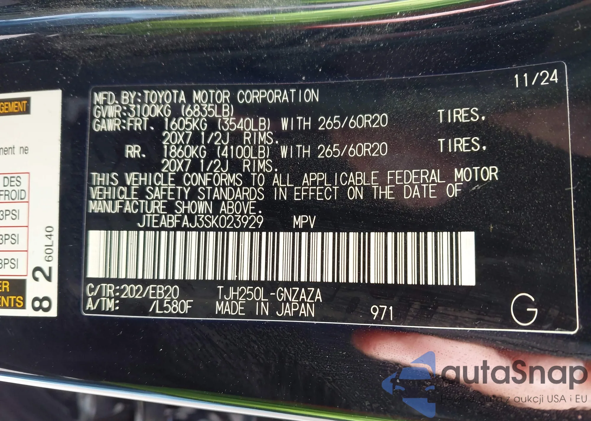 VIN: JTEABFAJ3SK023929