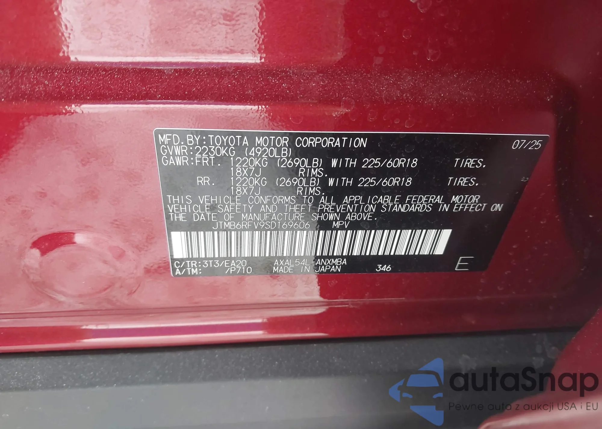 VIN: JTMB6RFV9SD169606