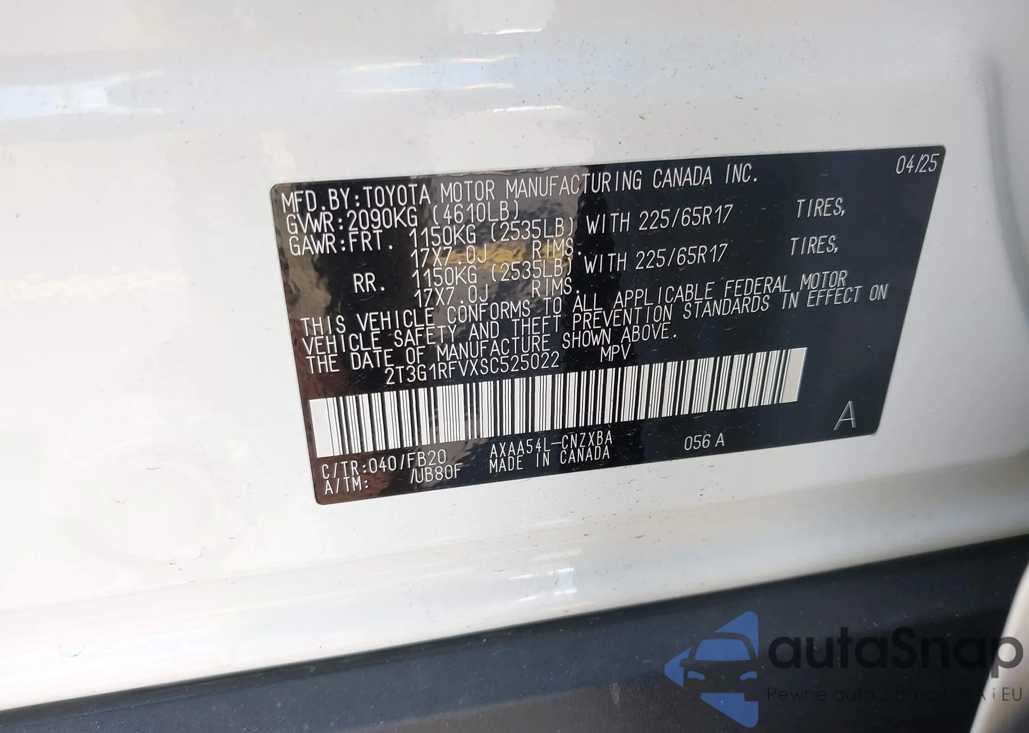 VIN: 2T3G1RFVXSC525022