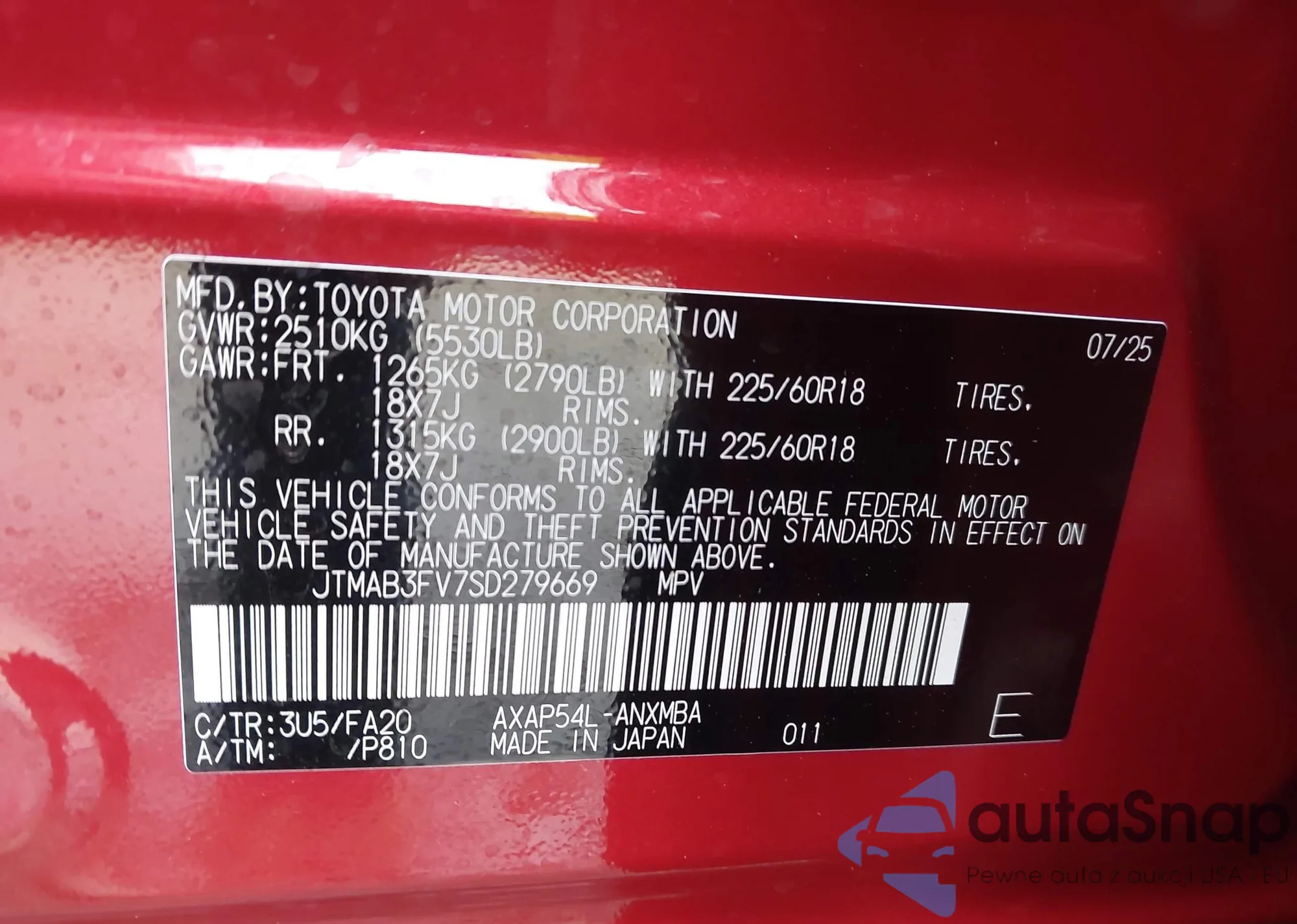 Samochód Toyota RAV 4 2025 (VIN JTMAB3FV7SD279669) nie był wcześniej licytowany. Dokumenty są czyste, przebieg odpowiada lub jest niższy niż średnia rynku. Sprzedaje go firma ubezpieczeniowa – polecamy zakup. Dostawa do portu zajmie ok. 6–8 tygodni.
