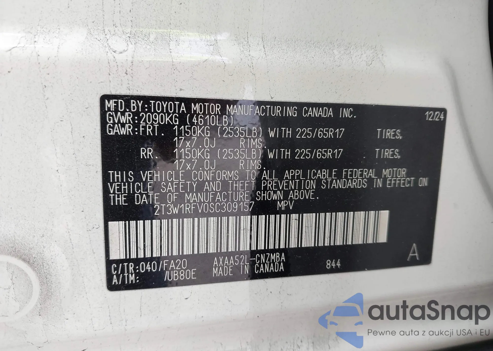 VIN: 2T3W1RFV0SC309157
