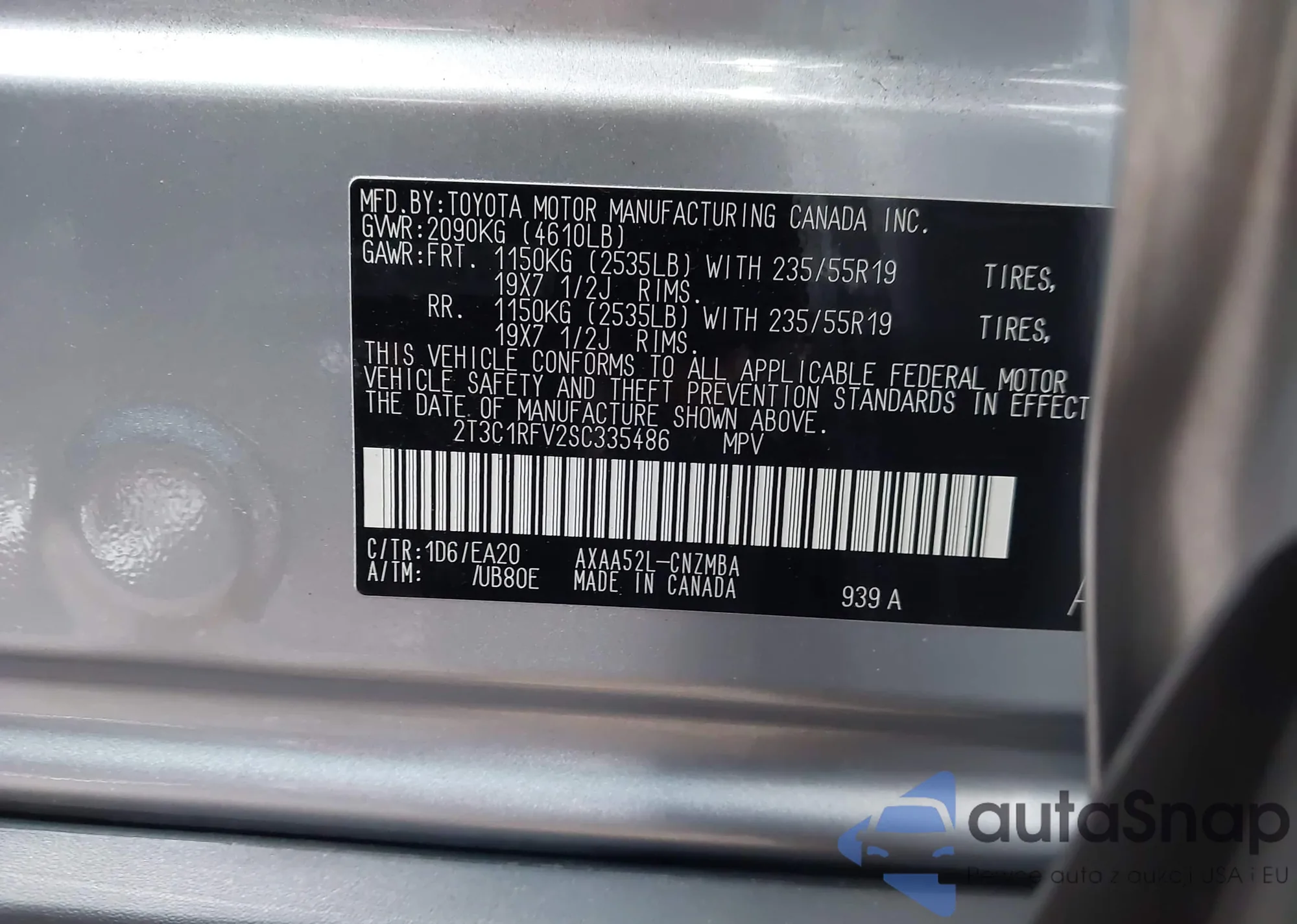 • VIN: 2T3C1RFV2SC335486