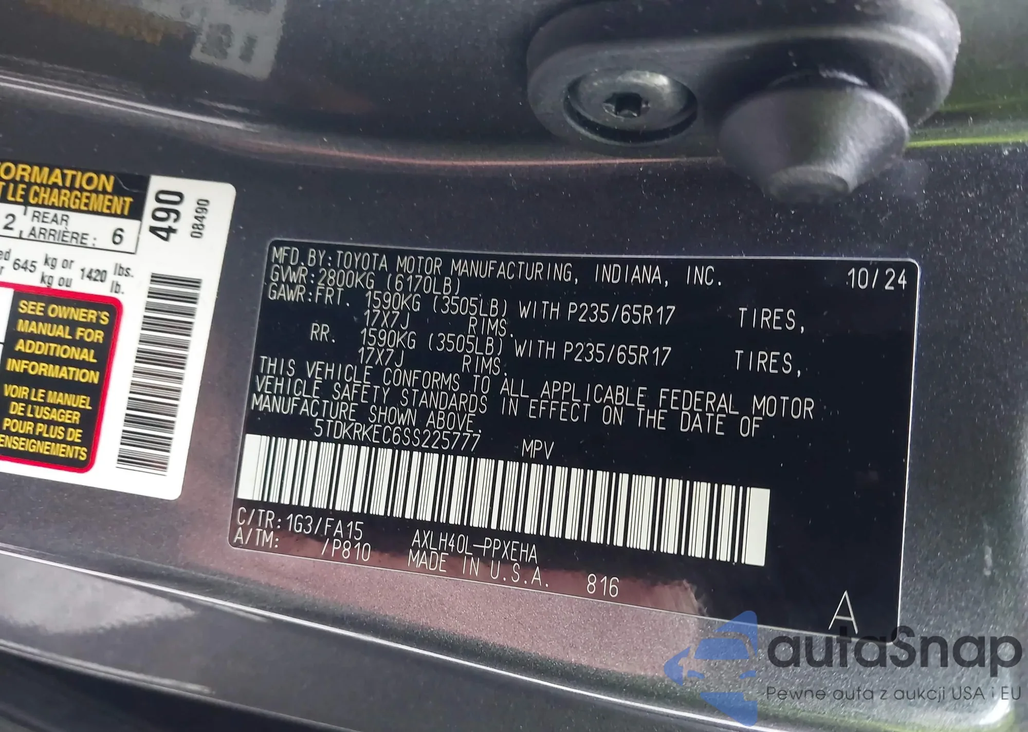 VIN: 5TDKRKEC6SS225777