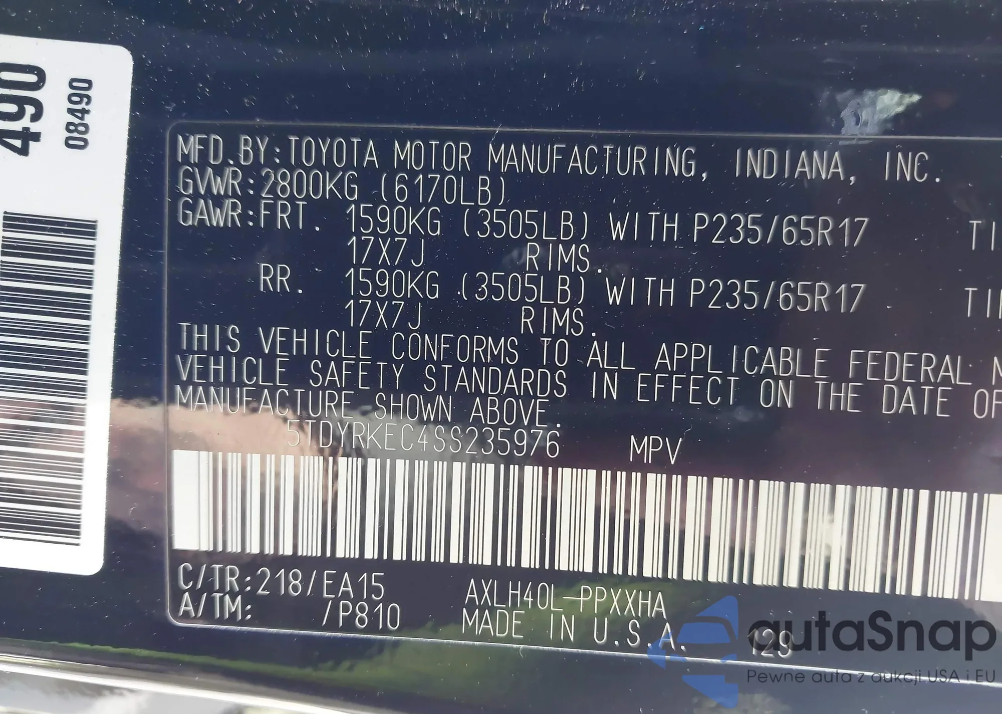 Samochód Toyota Sienna 2025 (VIN 5TDYRKEC4SS235976) nie był wcześniej licytowany. Dokumenty są czyste, przebieg odpowiada lub jest niższy niż średnia rynku. Sprzedaje go firma ubezpieczeniowa – polecamy zakup. Dostawa do portu zajmie ok. 6–8 tygodni.