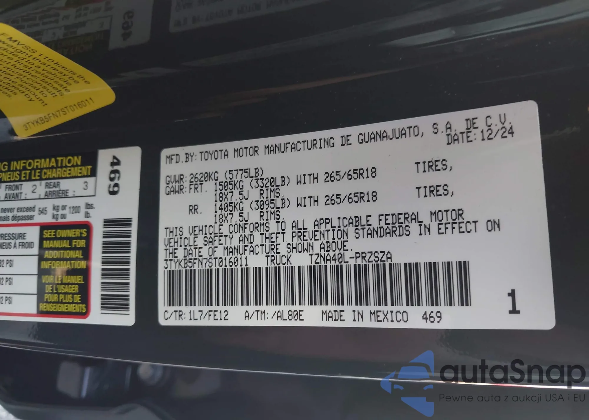 VIN: 3TYKB5FN7ST016011