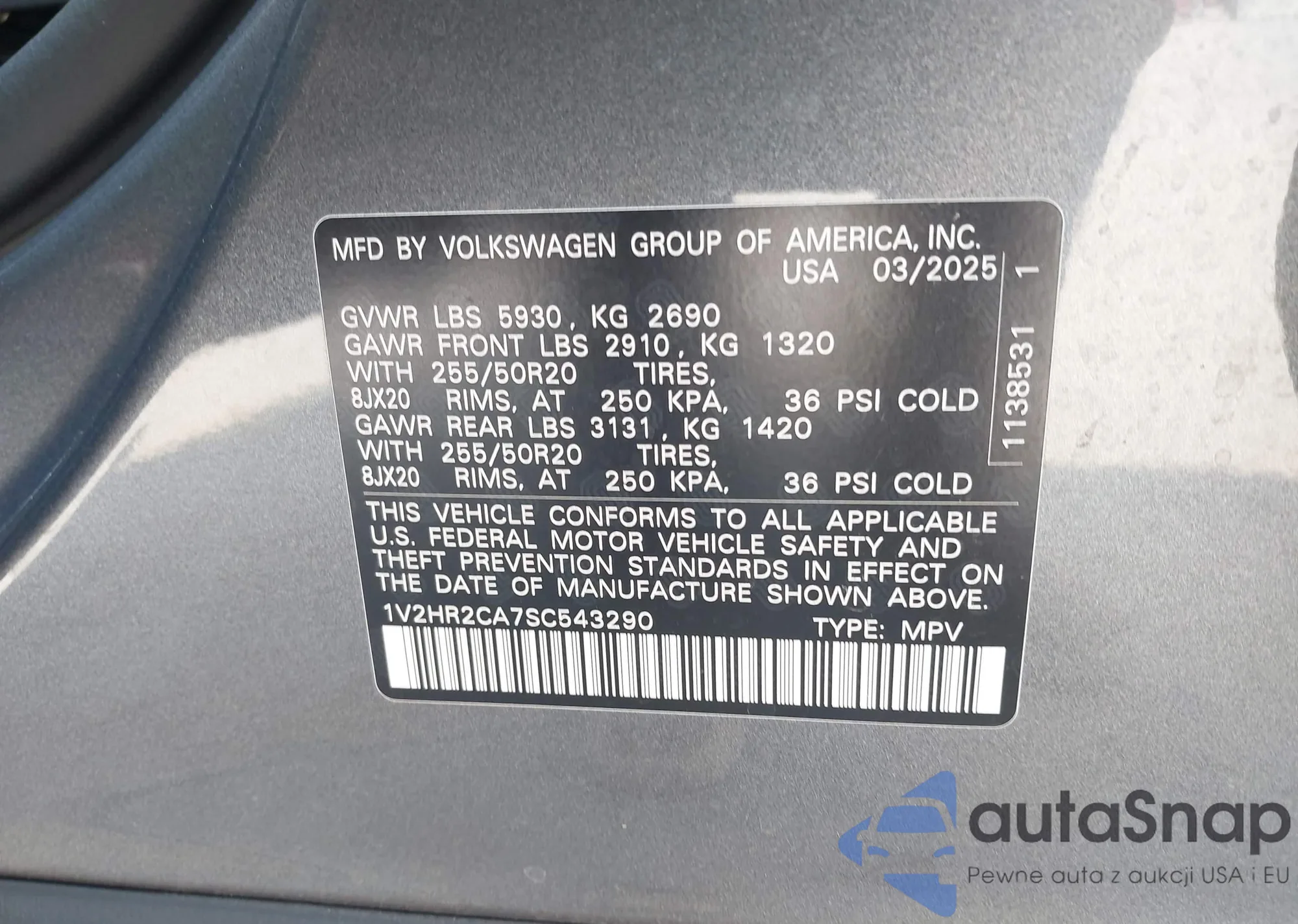 VIN: 1V2HR2CA7SC543290