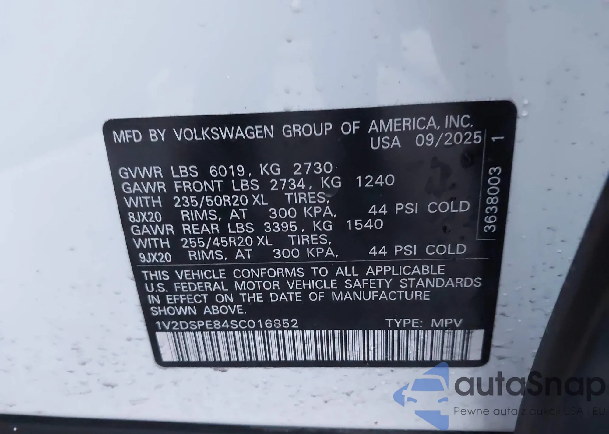 • VIN: 1V2DSPE84SC016852