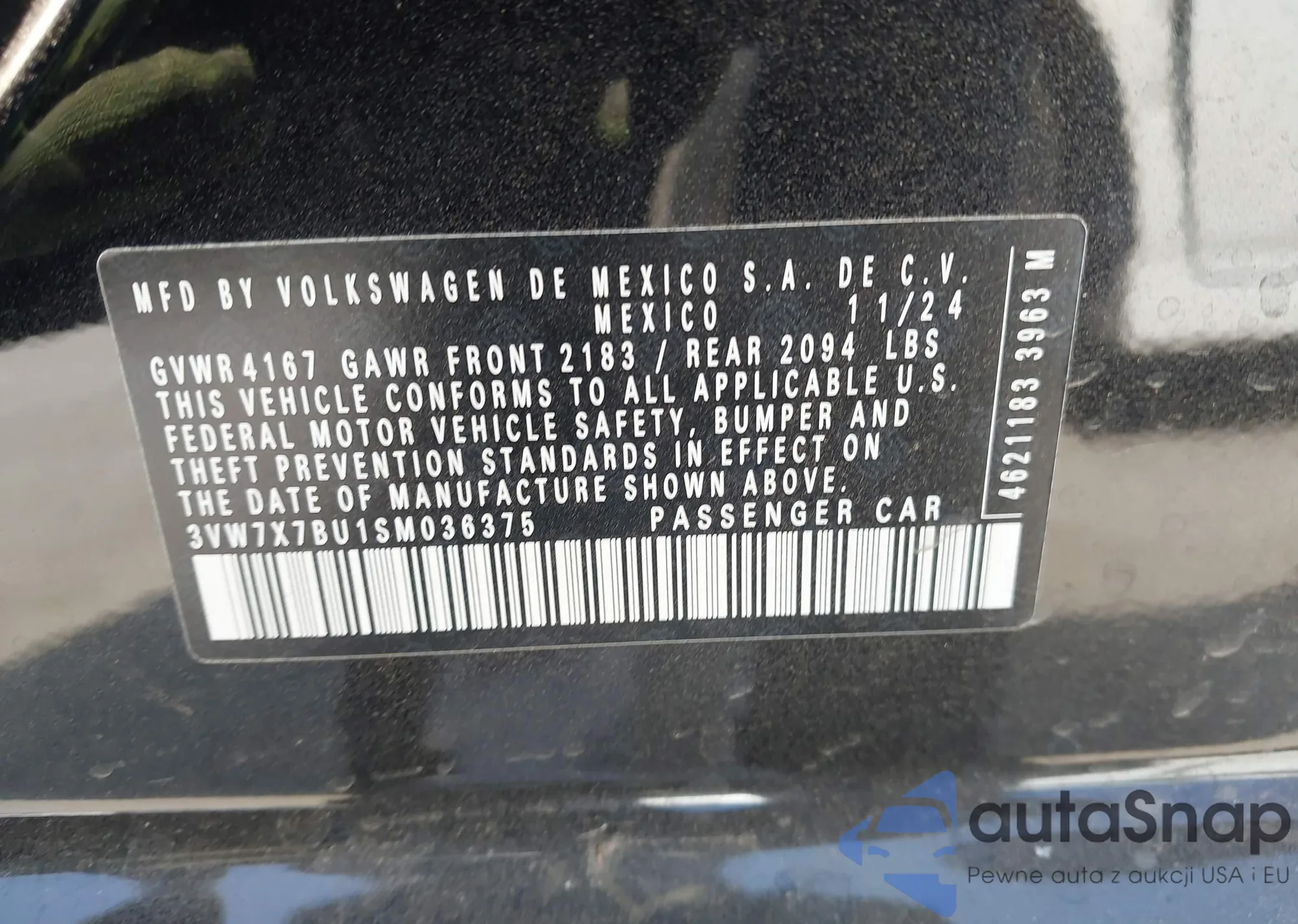 • VIN: 3VW7X7BU1SM036375