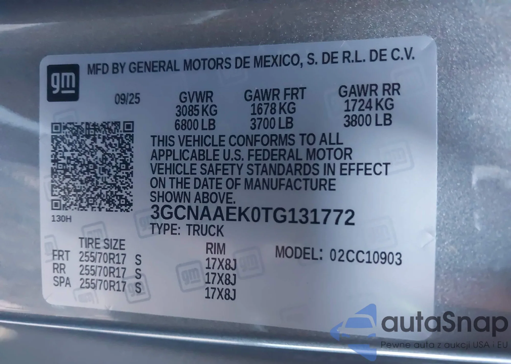 • VIN: 3GCNAAEK0TG131772