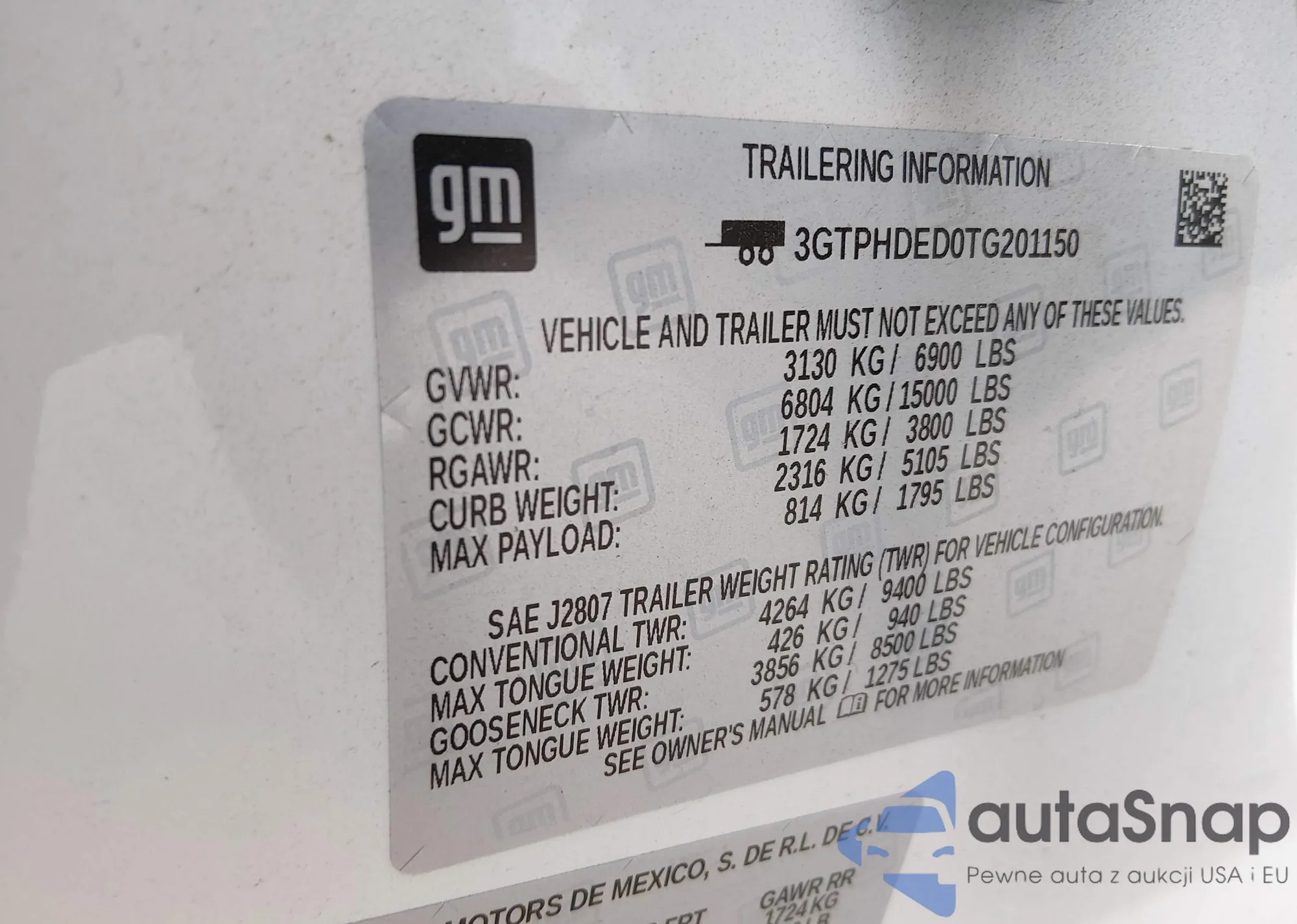 VIN: 3GTPHDED0TG201150