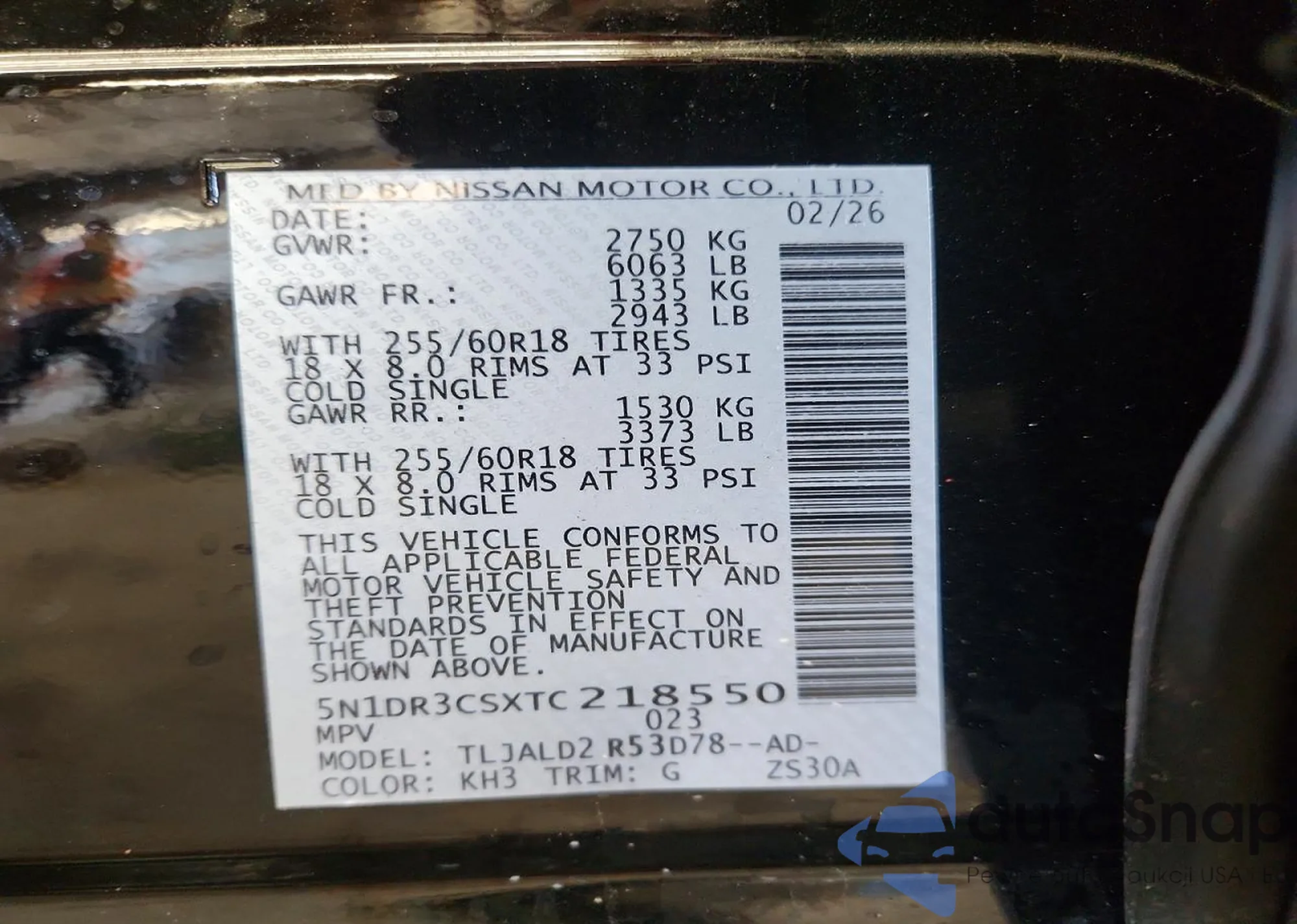 Samochód Nissan Pathfinder 2026 (VIN 5N1DR3CSXTC218550) sprzedaje go niezweryfikowany sprzedawca. Zalecamy raport Carfax i potwierdzenie możliwości rejestracji pojazdu przed zakupem.
