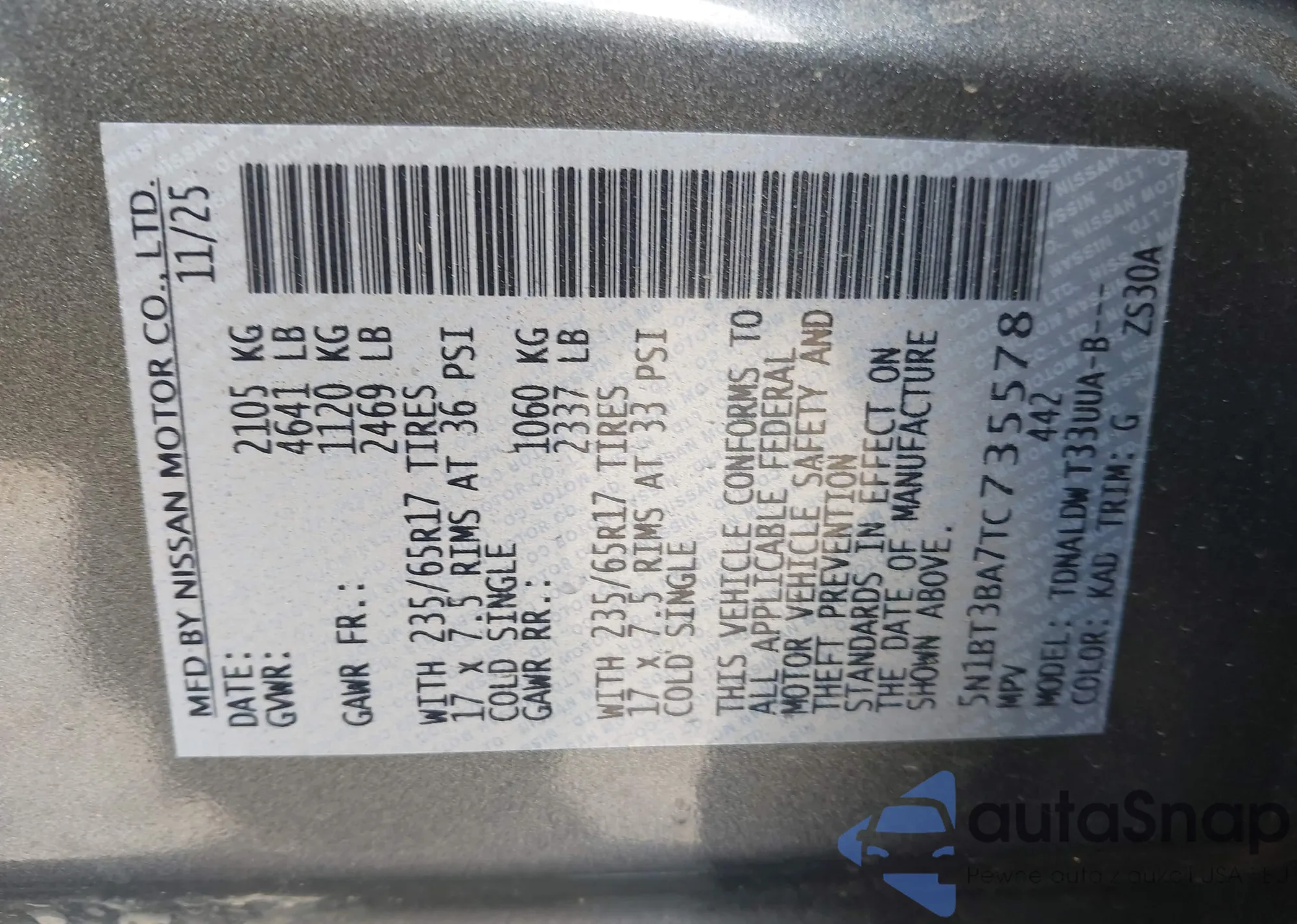 VIN: 5N1BT3BA7TC735578