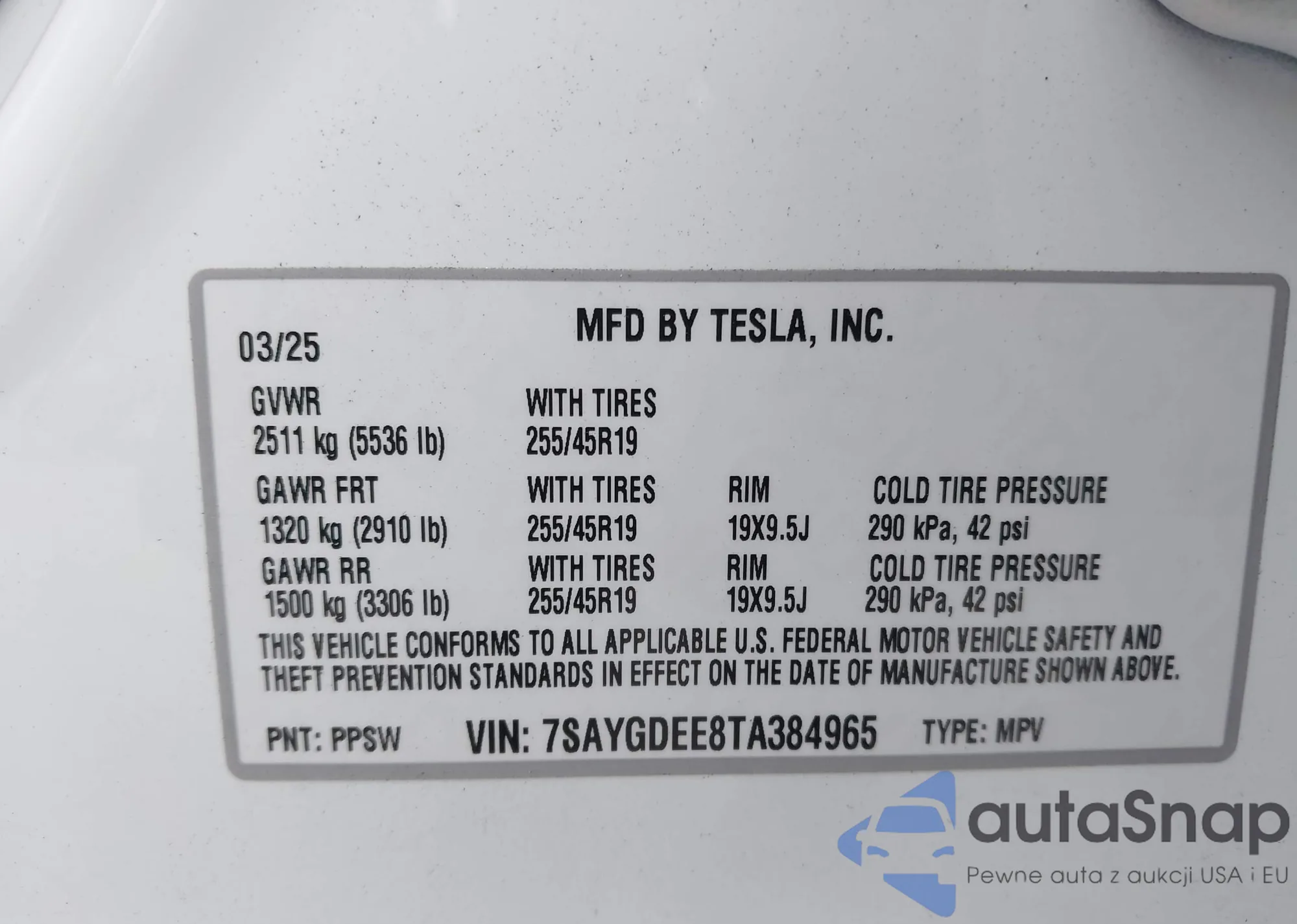 VIN: 7SAYGDEE8TA384965