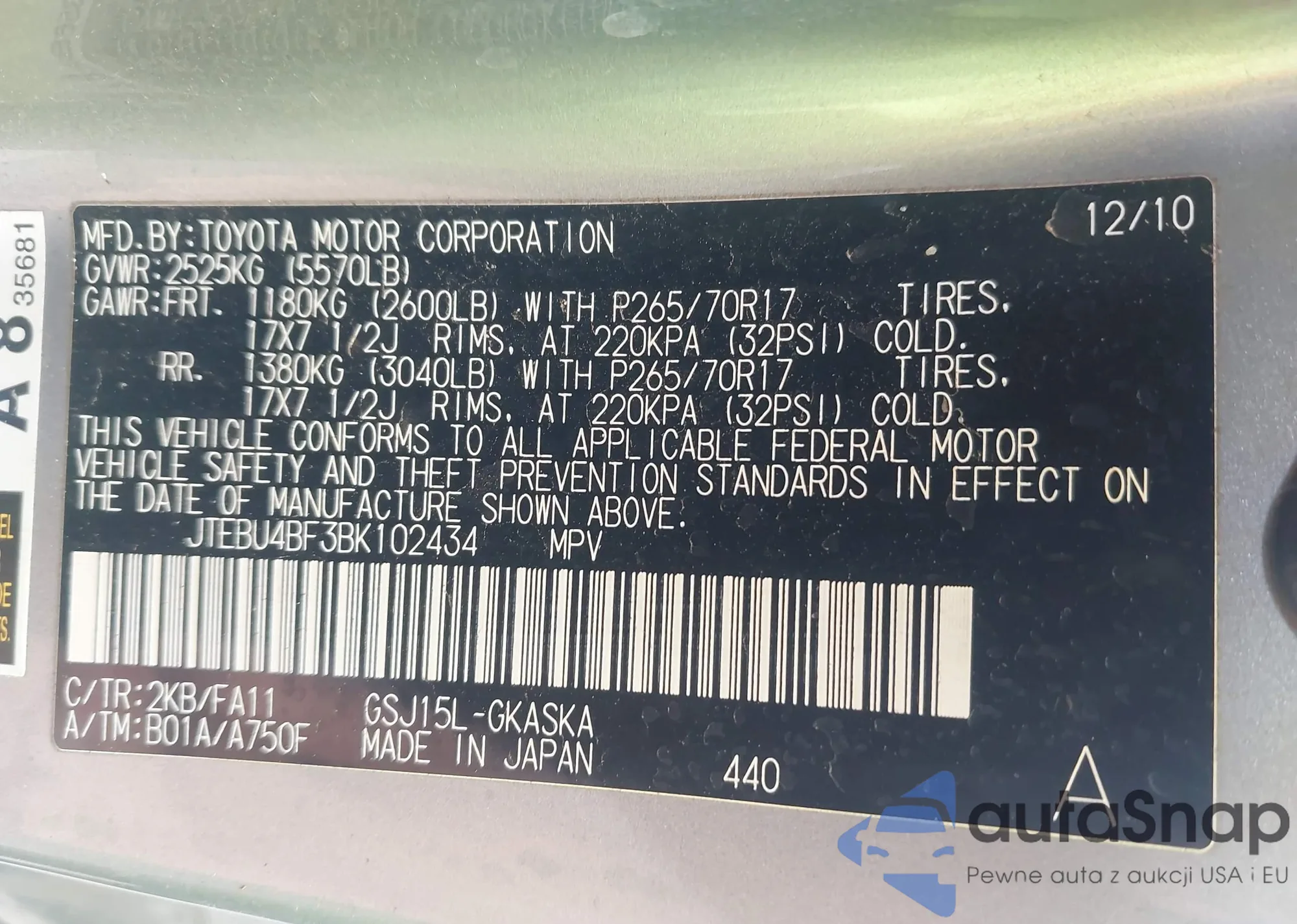 • VIN JTEBU4BF3BK102434