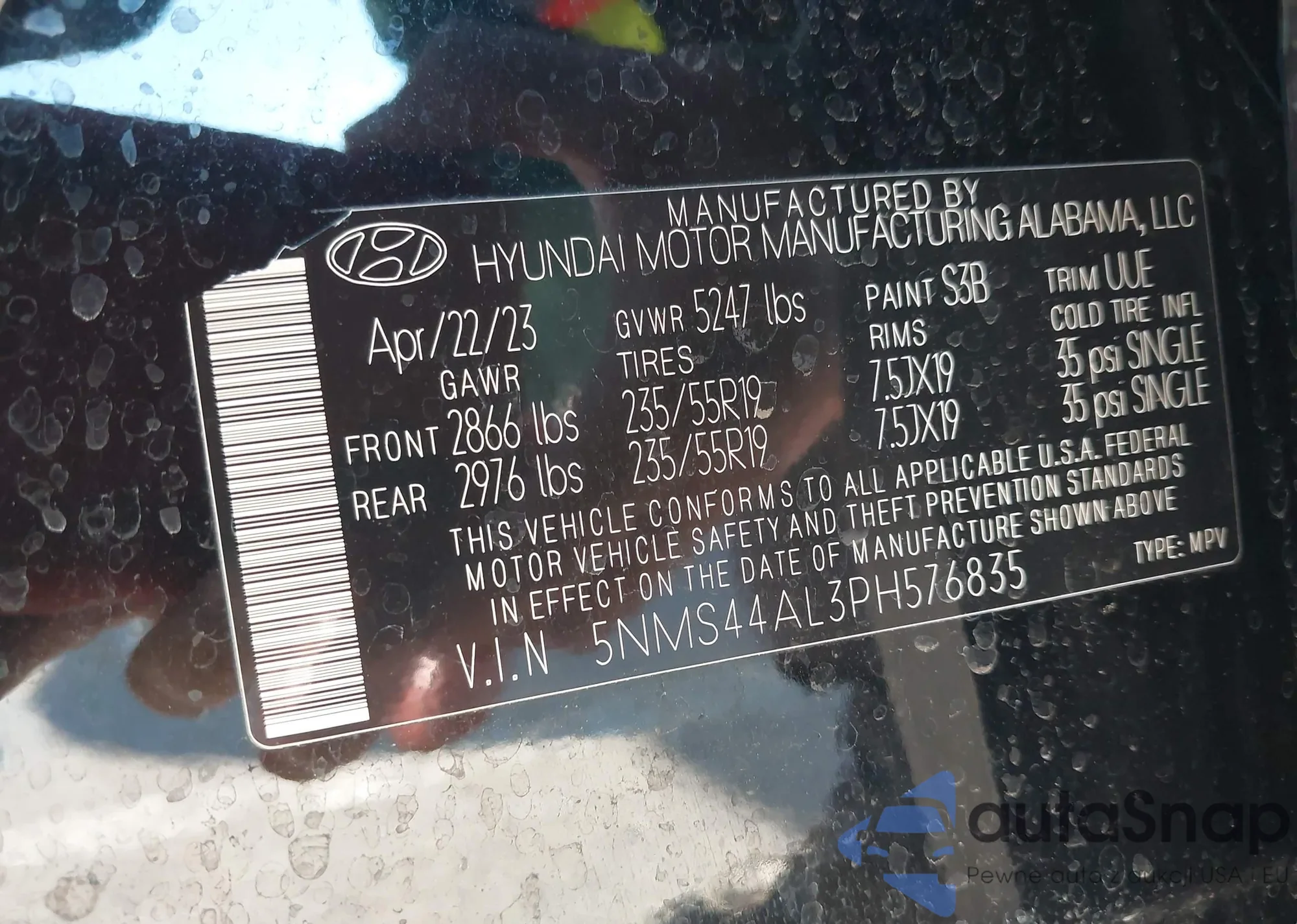 • VIN 5NMS44AL3PH576835