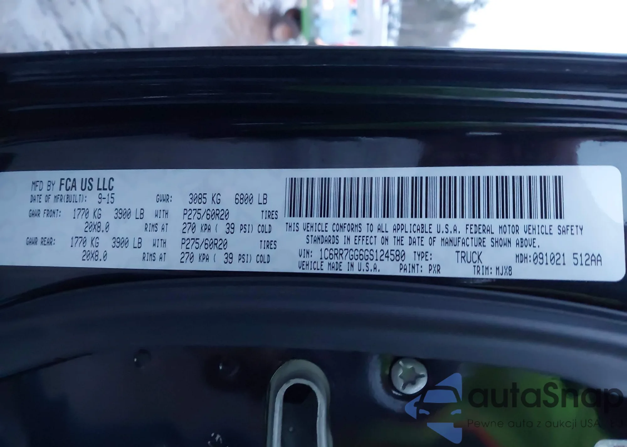 • VIN 1C6RR7GG6GS124580