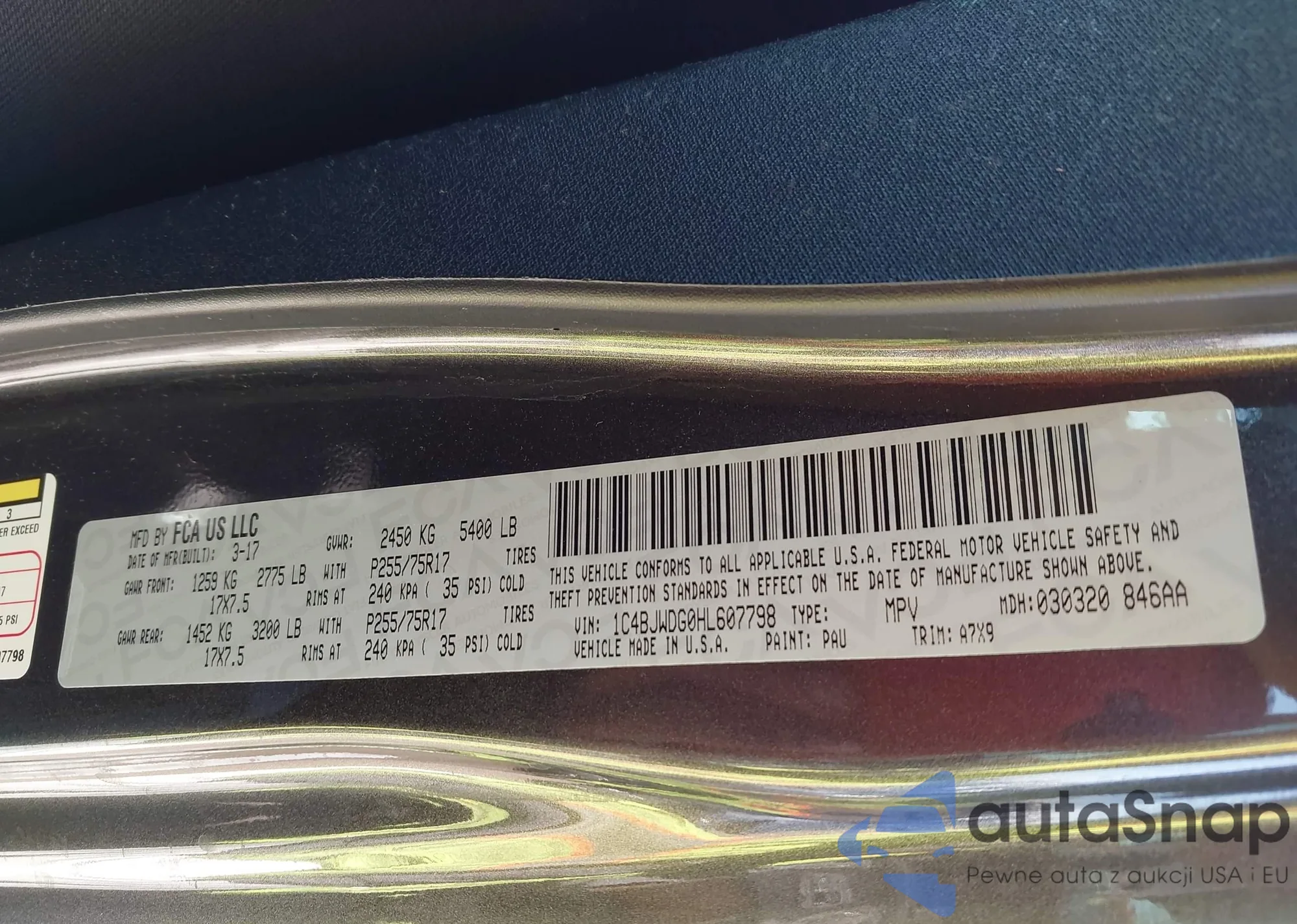 LOT: 44297740 VIN: 1C4BJWDG0HL607798