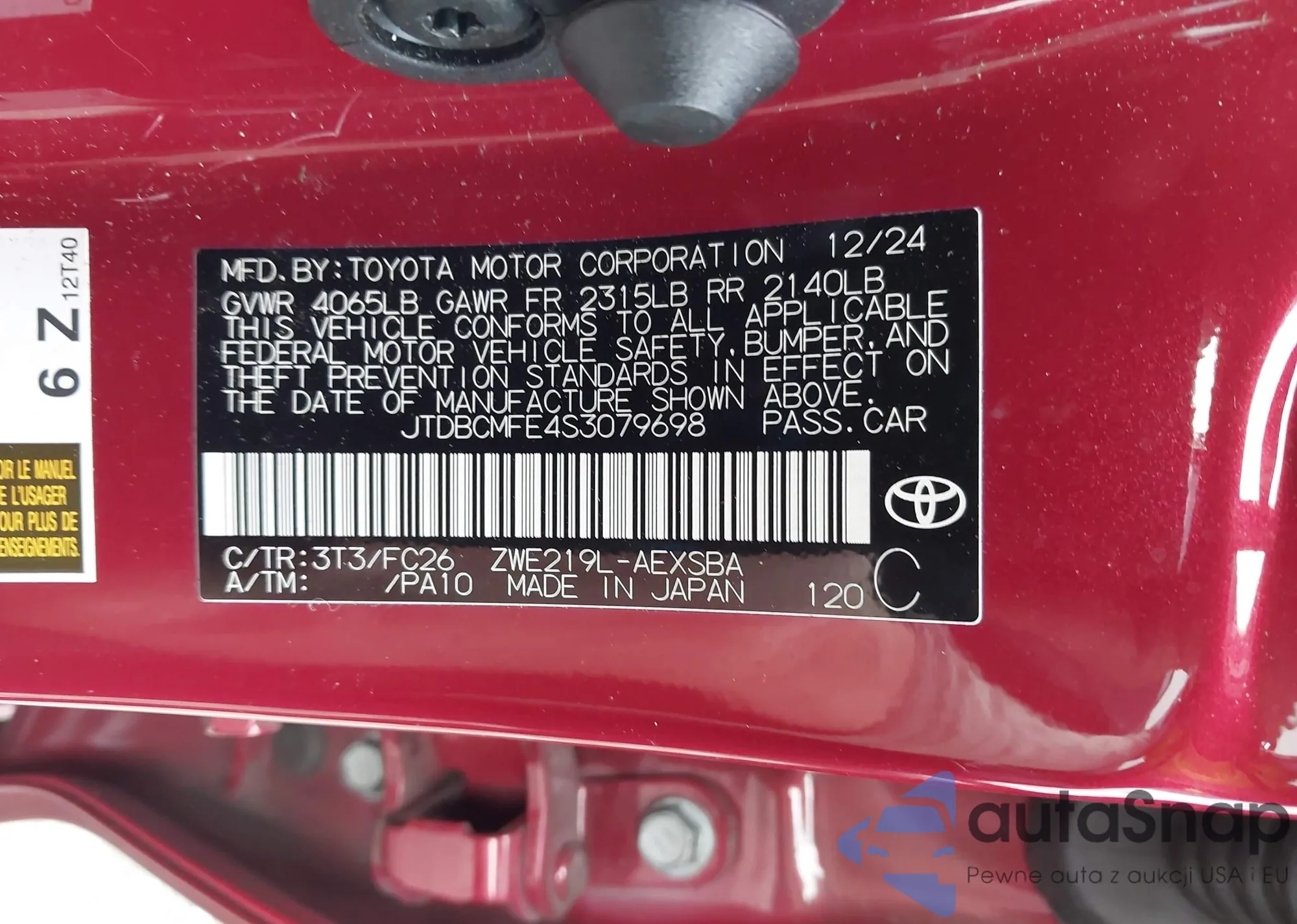 LOT: 43735844 VIN: JTDBCMFE4S3079698