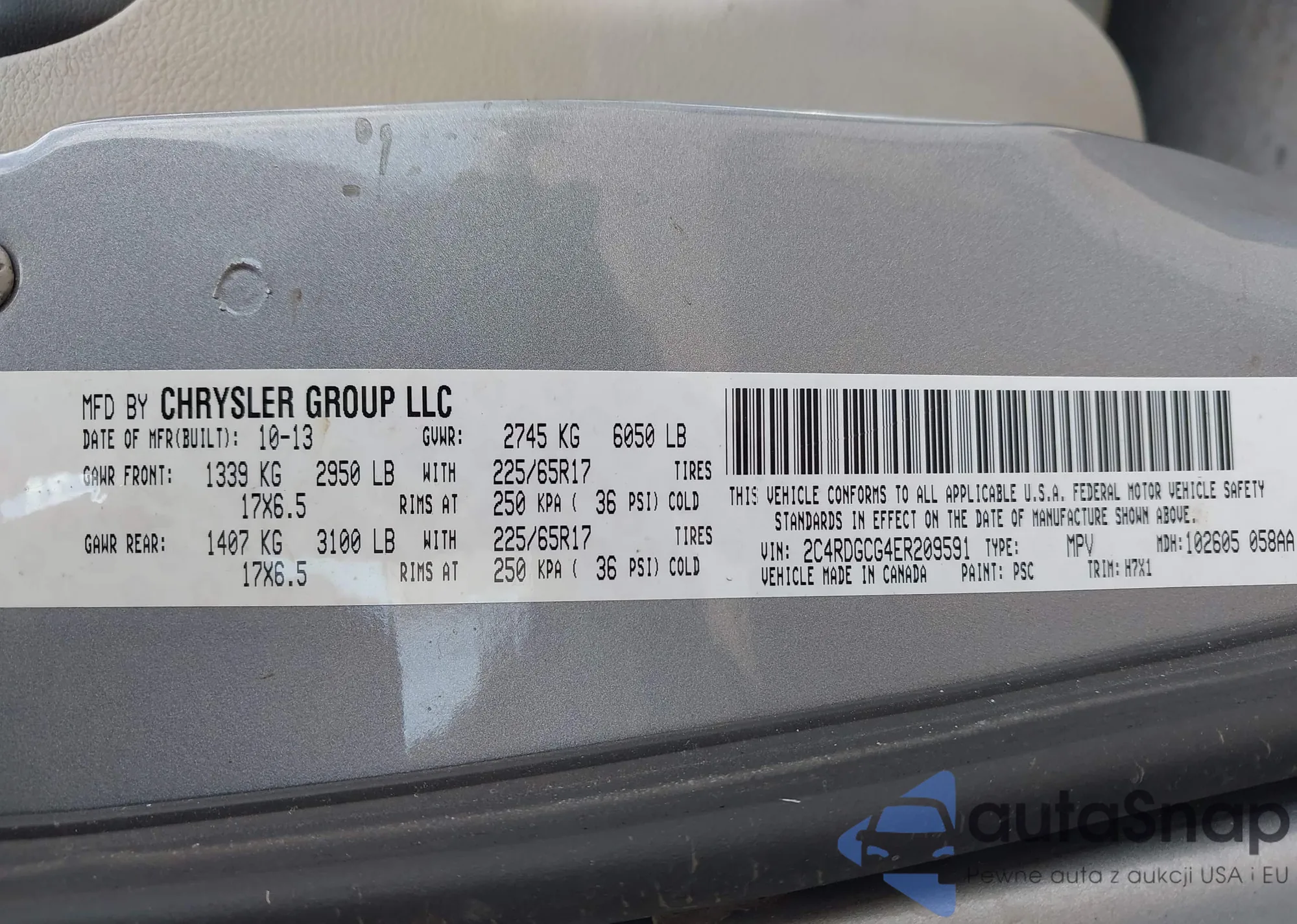 • VIN 2C4RDGCG4ER209591