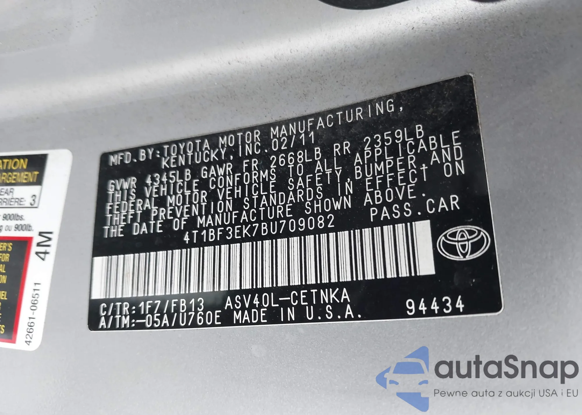 • VIN 4T1R11AK7PU179274
