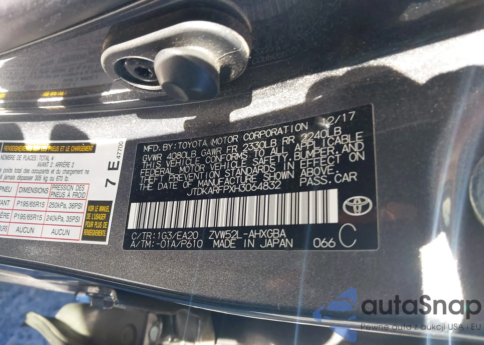 LOT: 44191039 VIN: JTDKARFPXH3064832
