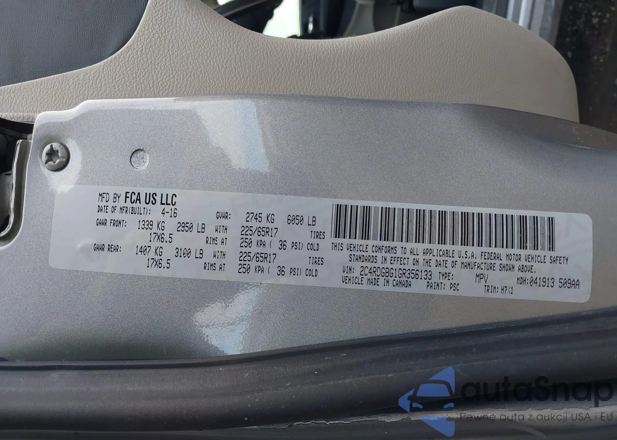 • VIN 2C4RDGBG1GR356133