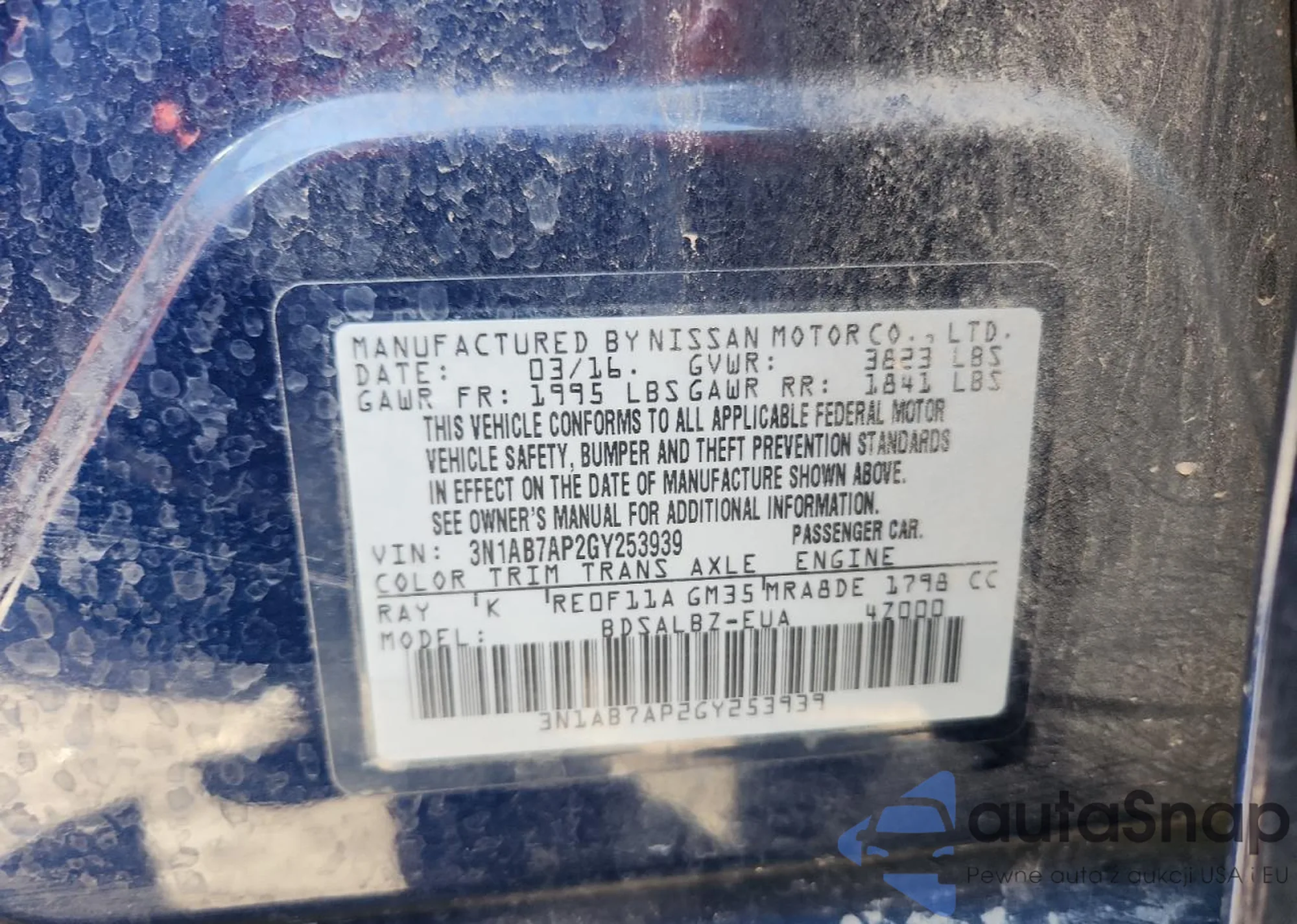LOT: 93200495 VIN: 3N1AB7AP2GY253939