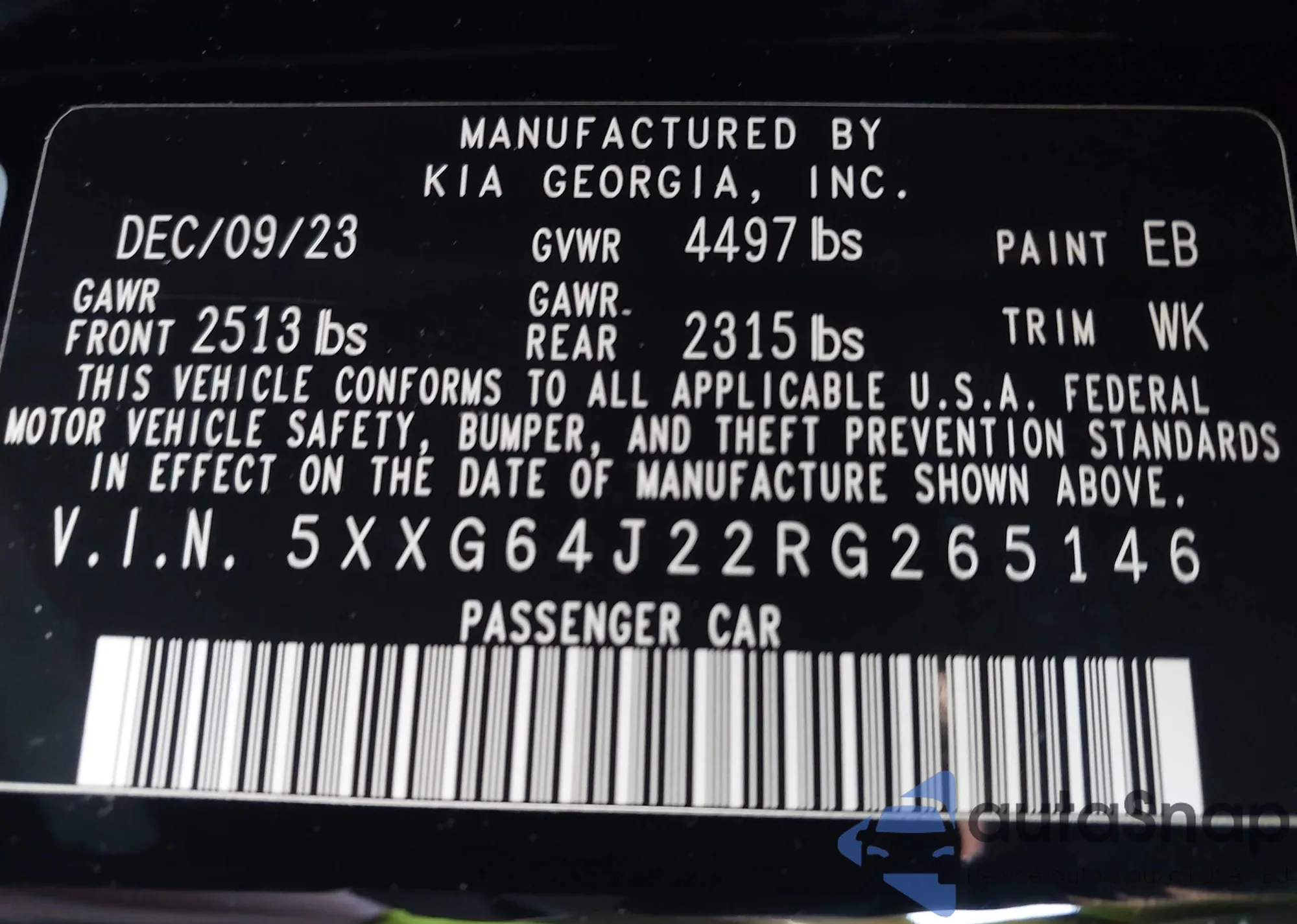 • VIN 5XXG64J22RG265146