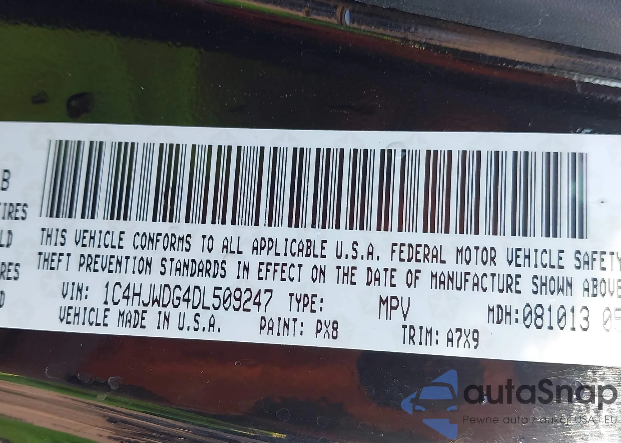 • VIN 1C4HJWDG4DL509247