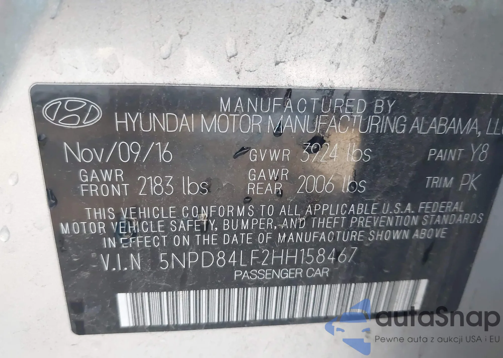 • VIN 5NPD84LF2HH158467