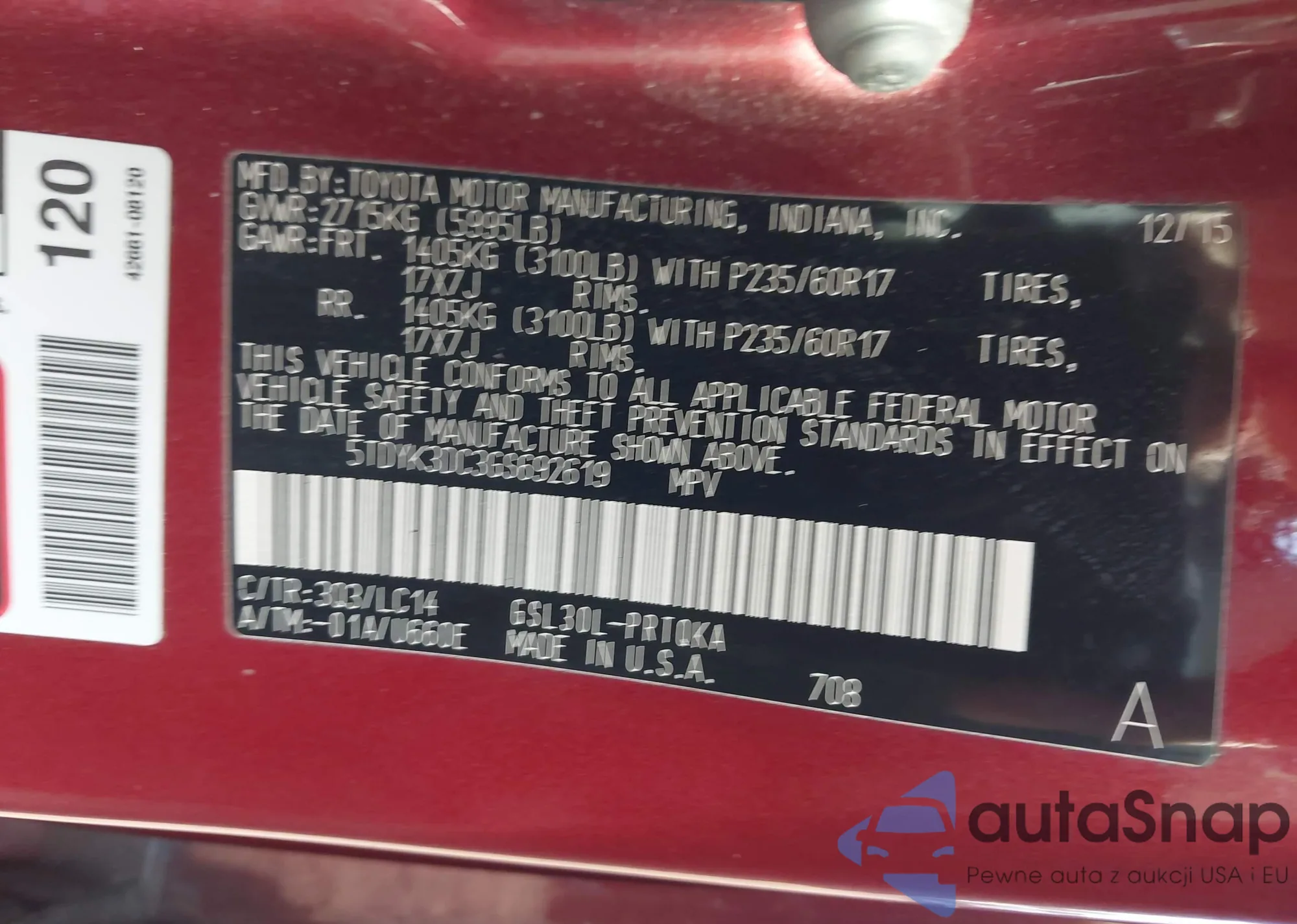 • VIN 5TDYK3DC3GS692619