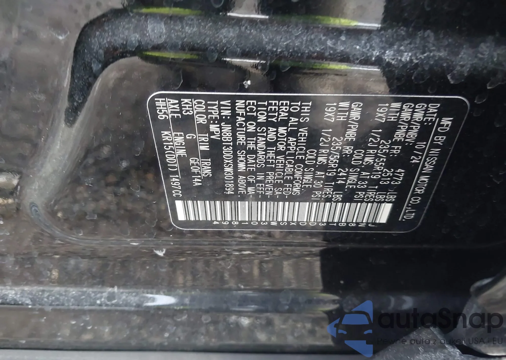• VIN JN8BT3DDXSW301894