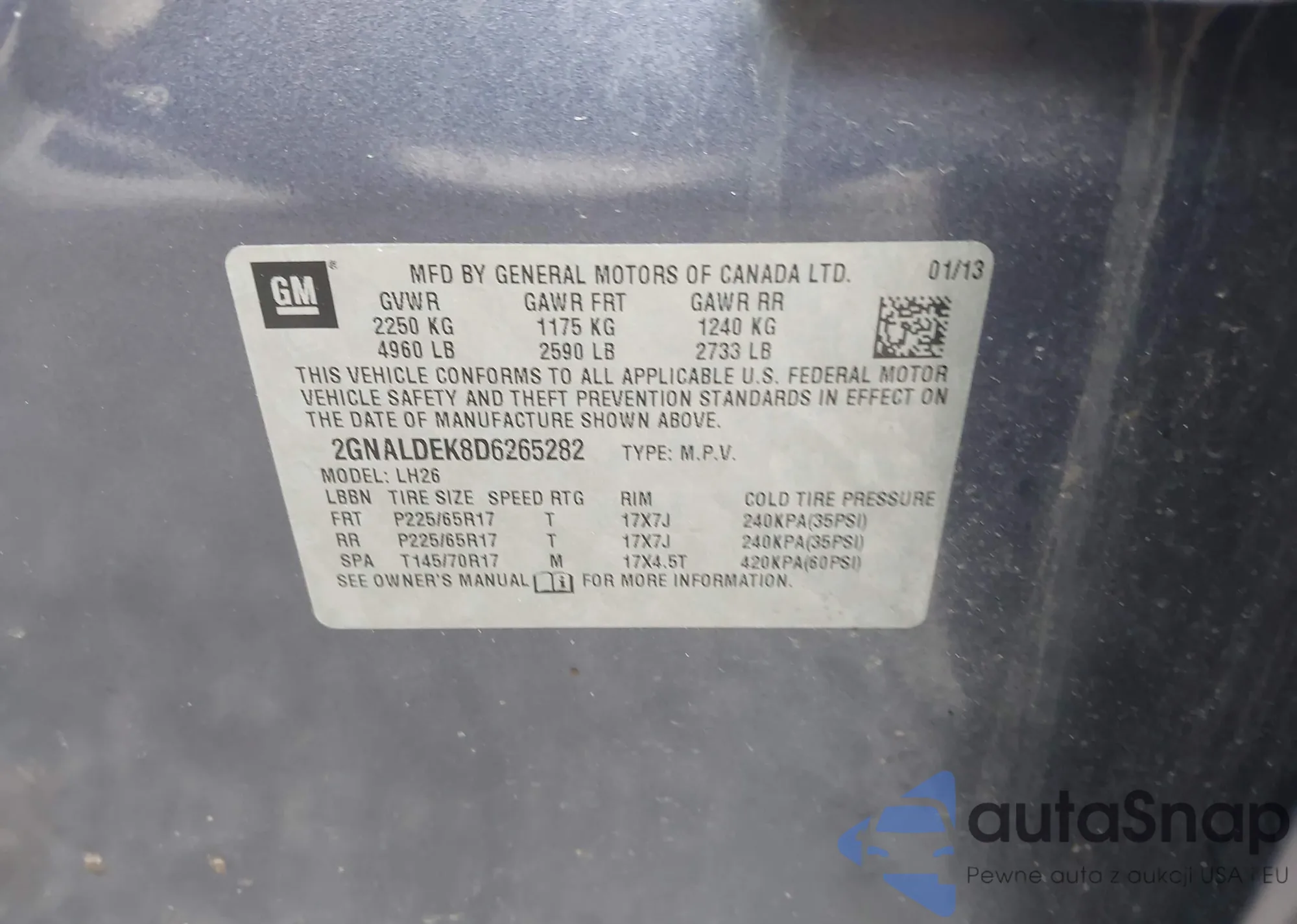 • VIN 2GNALDEK8D6265282