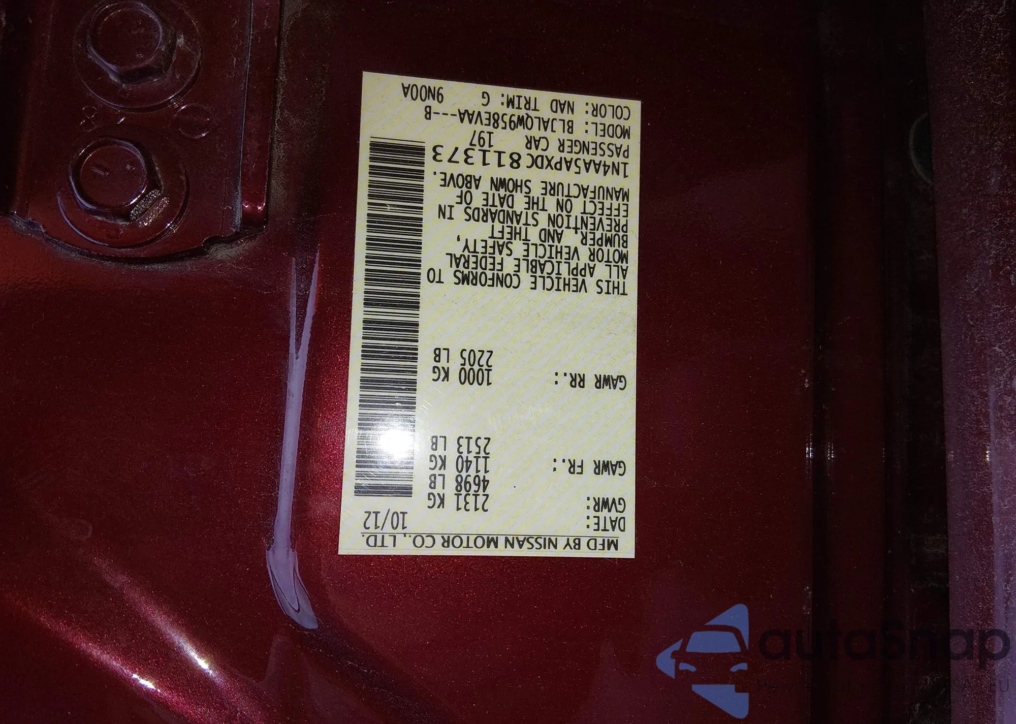 LOT: 43979453 VIN: 1N4AA5APXDC811373