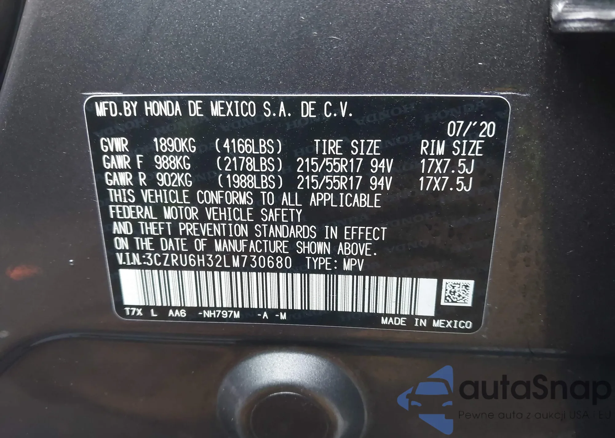 • VIN 3CZRU6H32LM730680