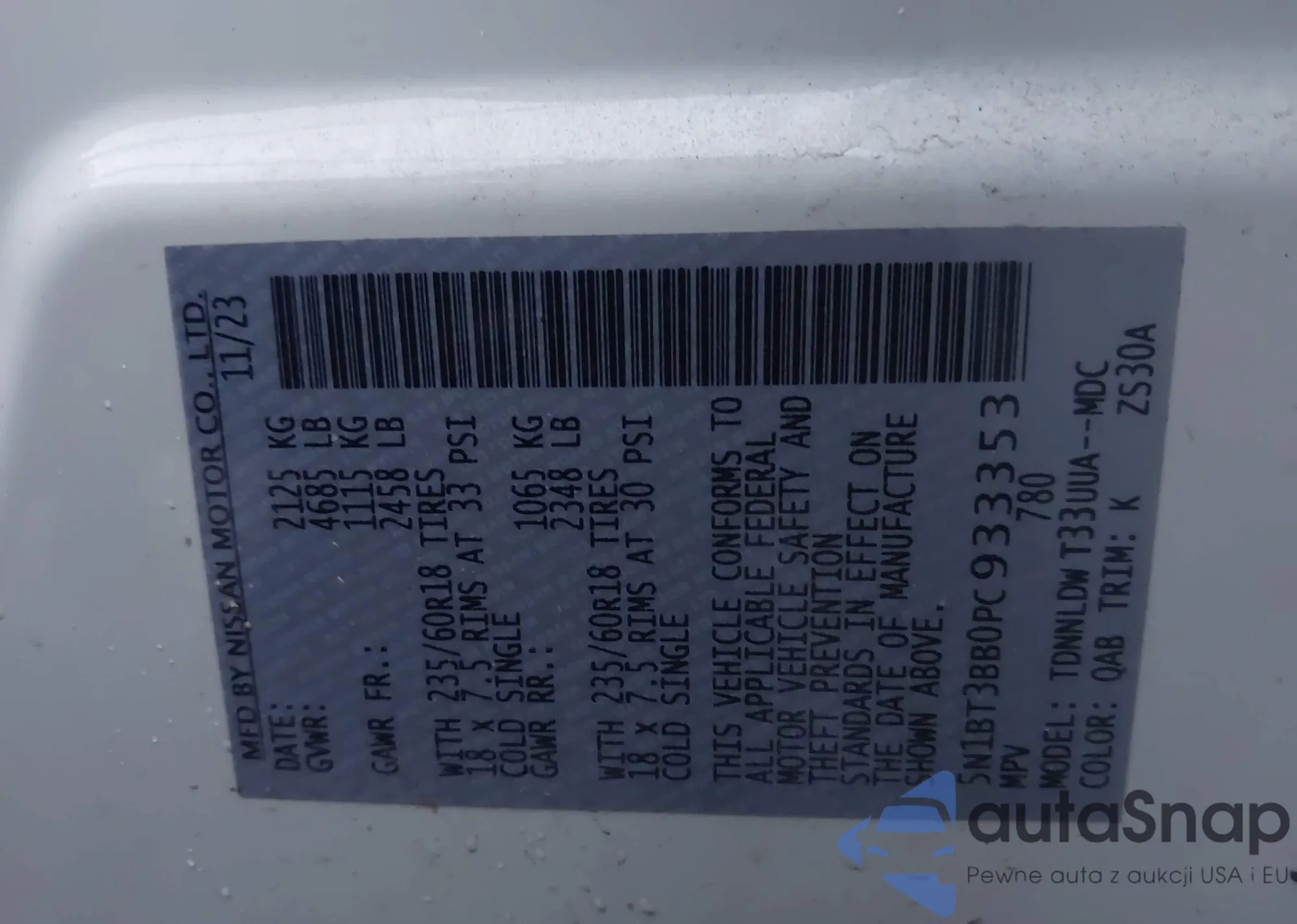 • VIN 5N1BT3BB0PC933353