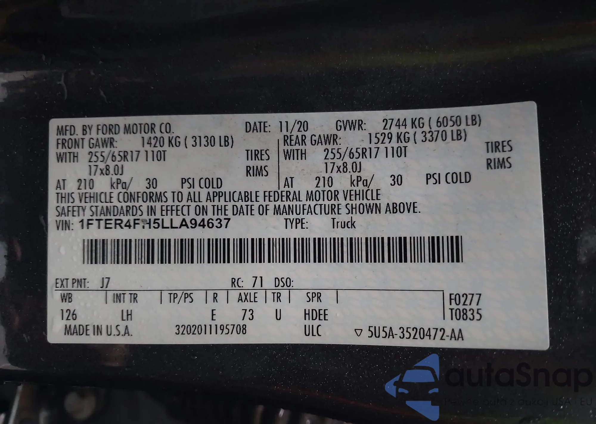 • VIN 1FTER4FH5LLA94637