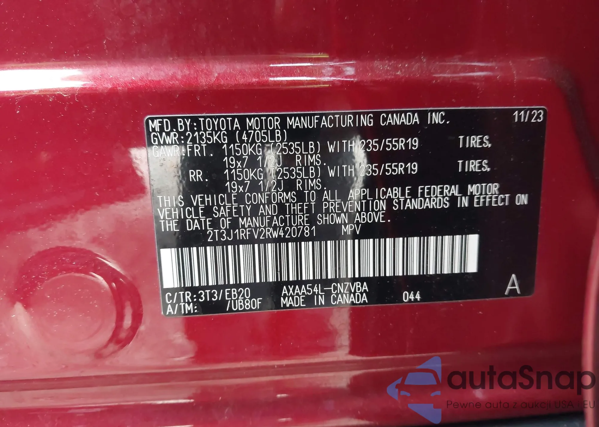 • VIN 2T3J1RFV2RW420781