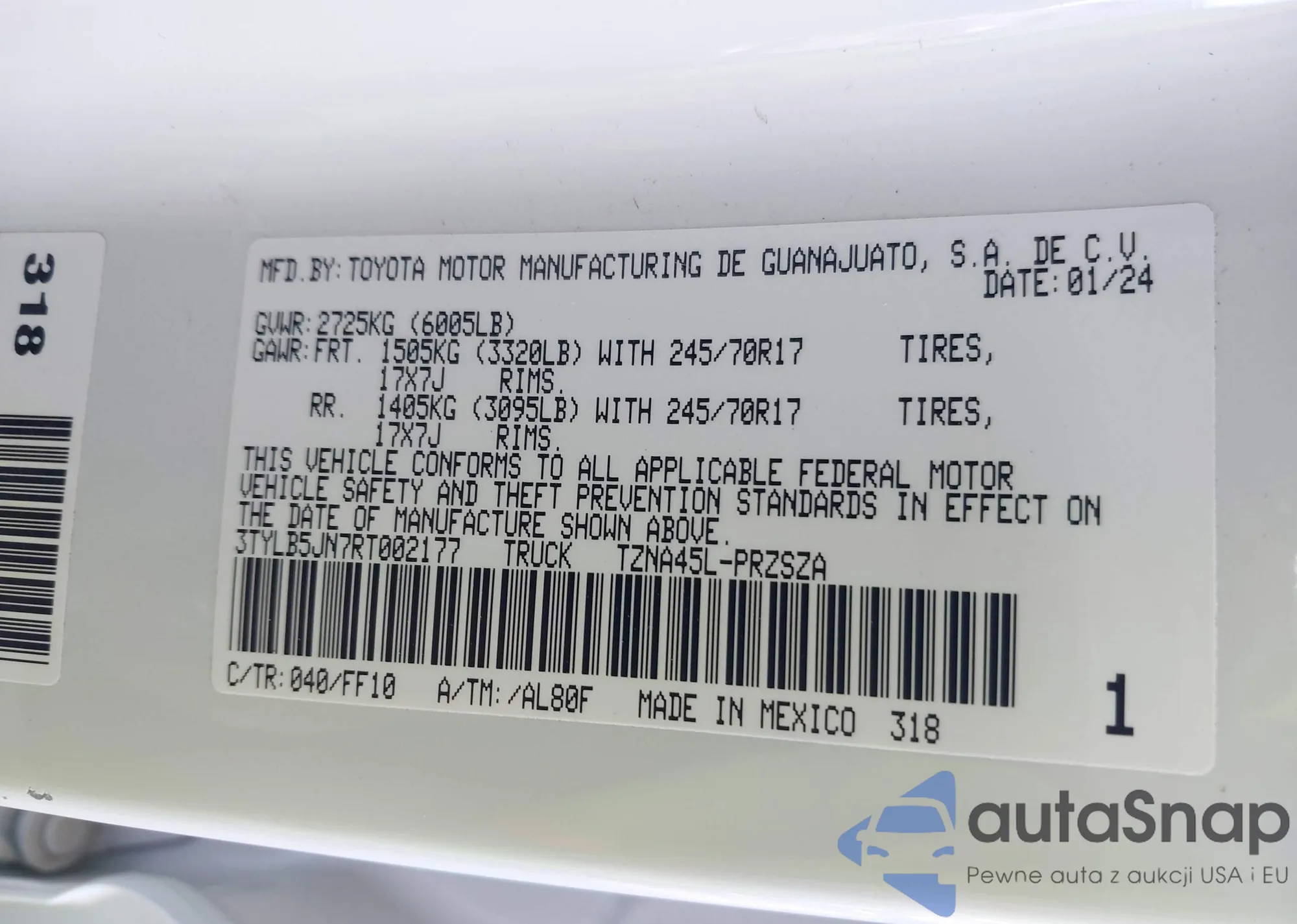 • VIN 3TYLB5JN7RT002177