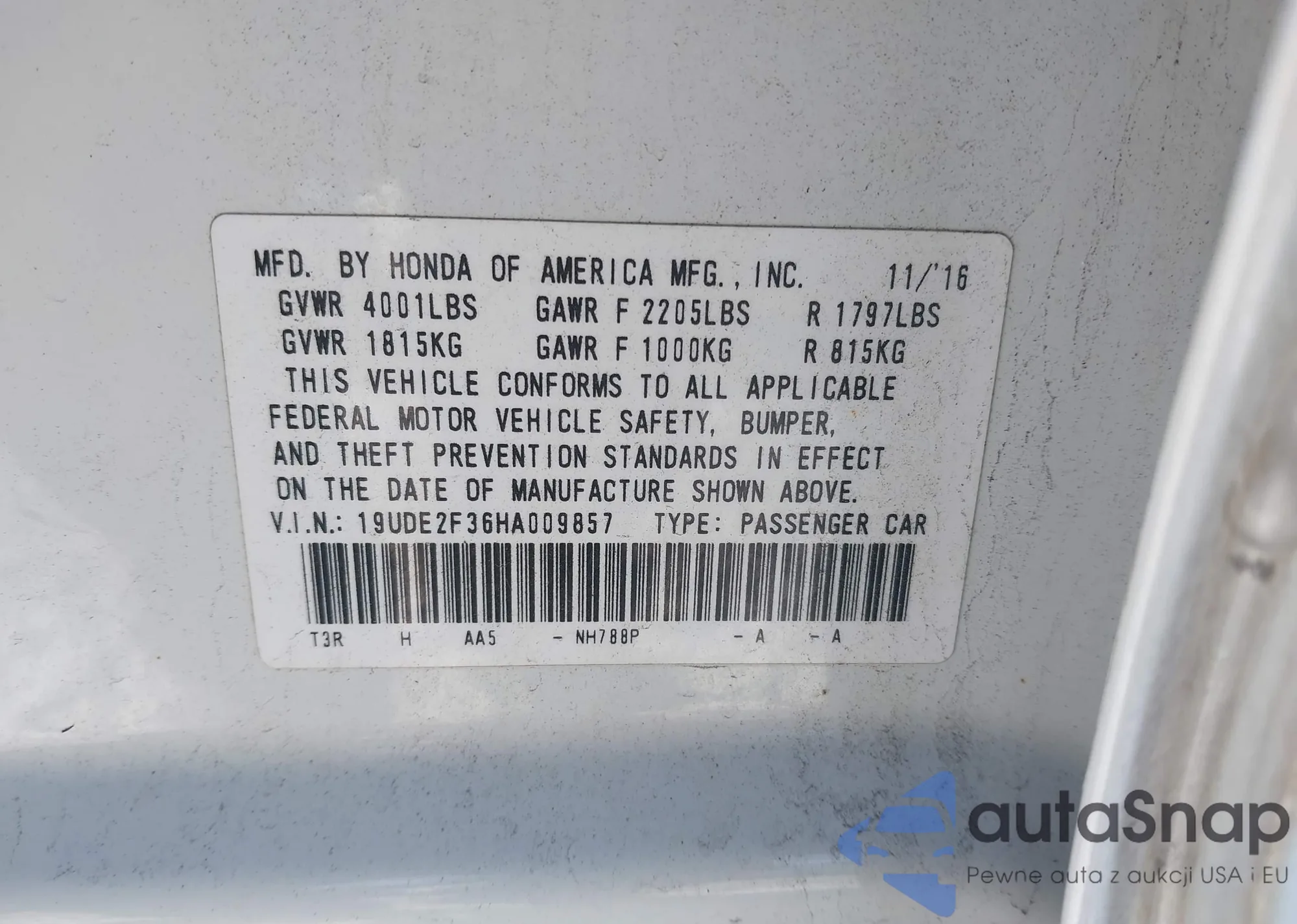 • VIN 19UDE2F36HA009857