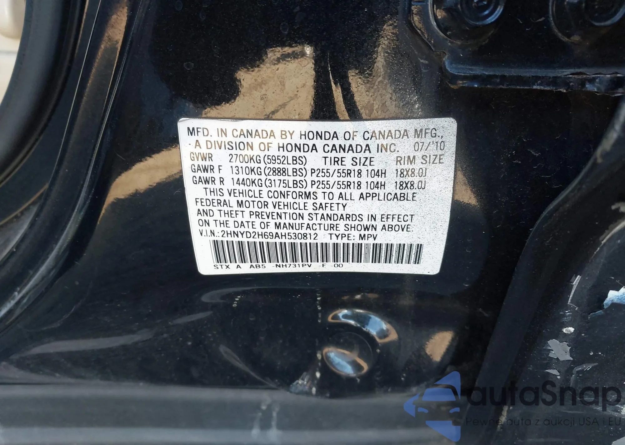 LOT: 43332055 VIN: 2HNYD2H69AH530812
