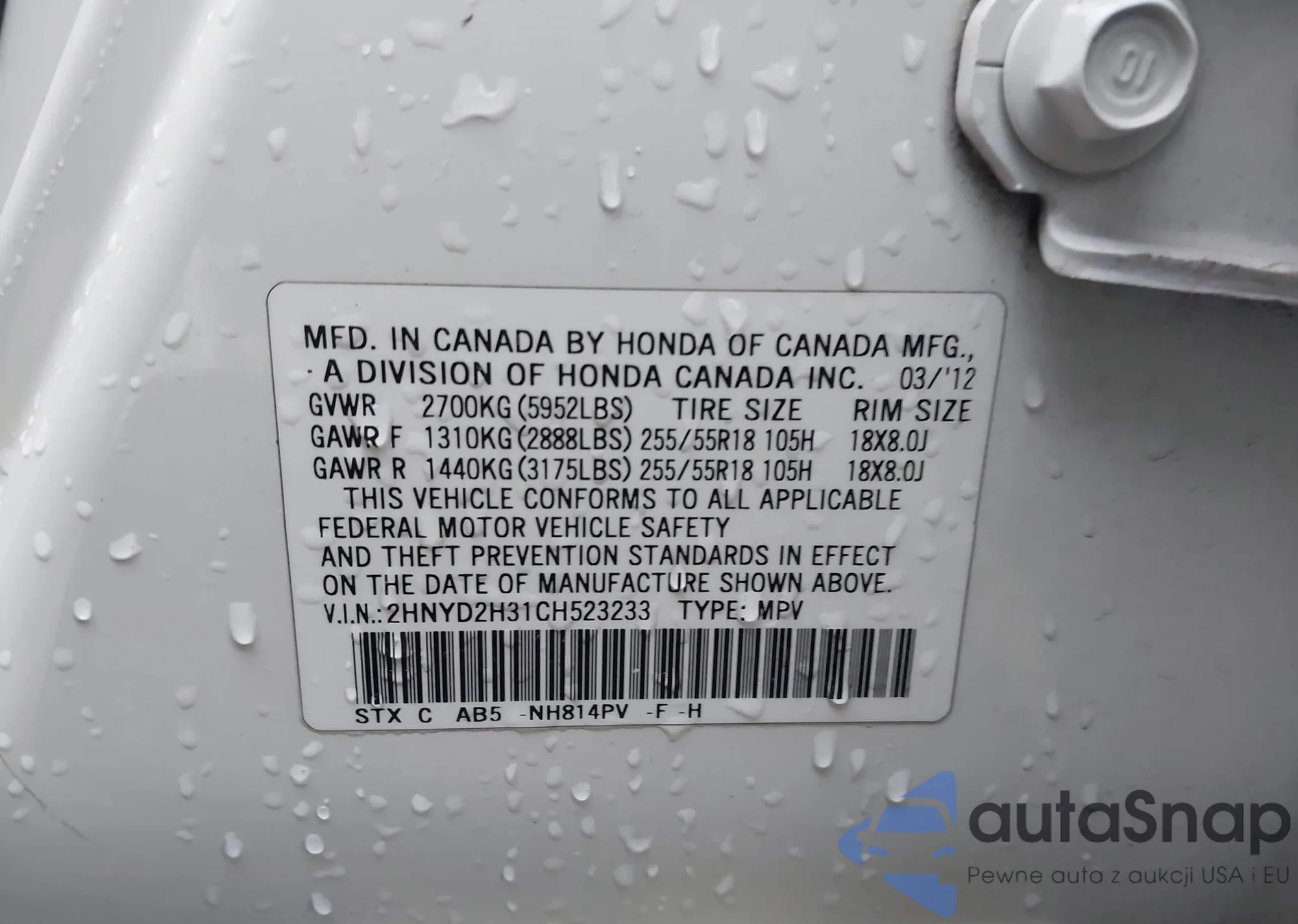 • VIN 2HNYD2H31CH523233